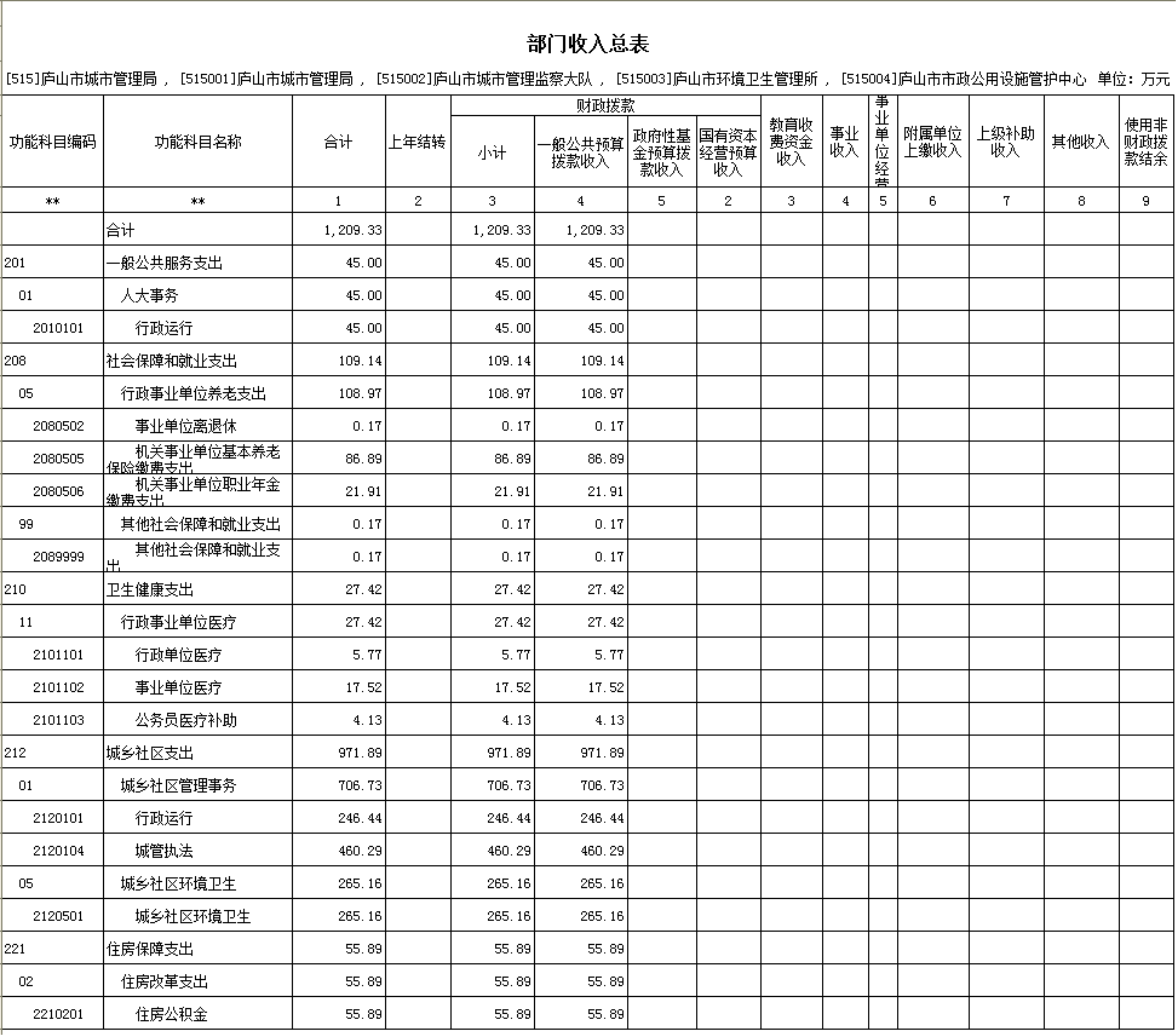 二、《部门收入总表》