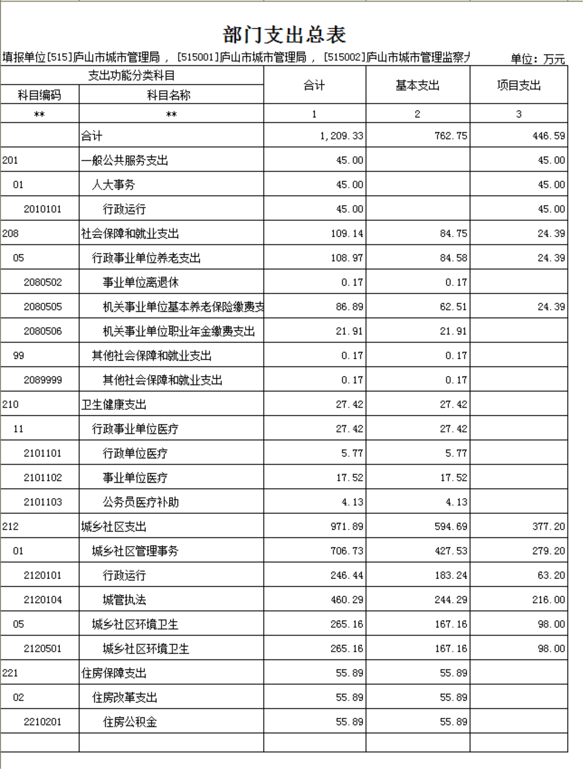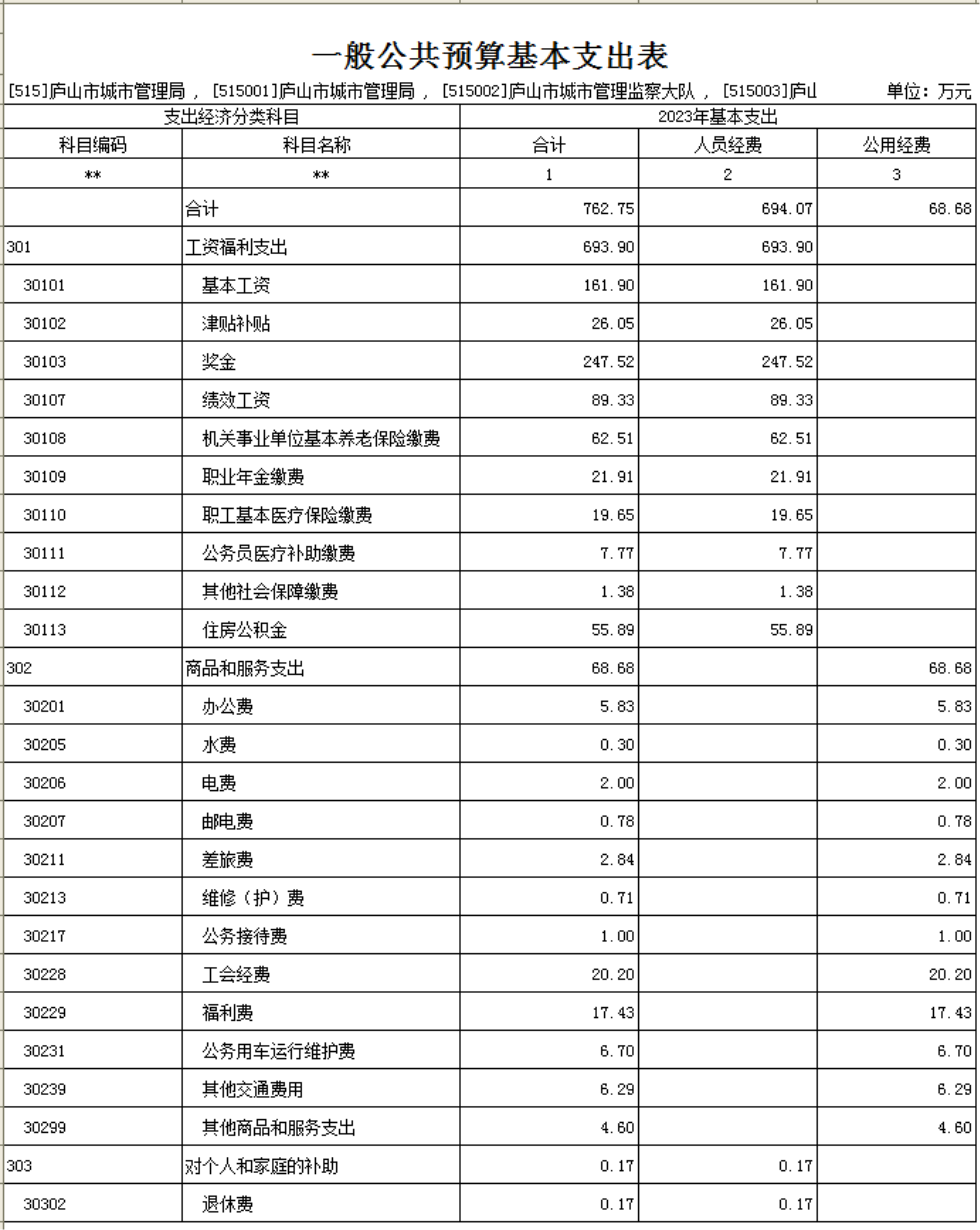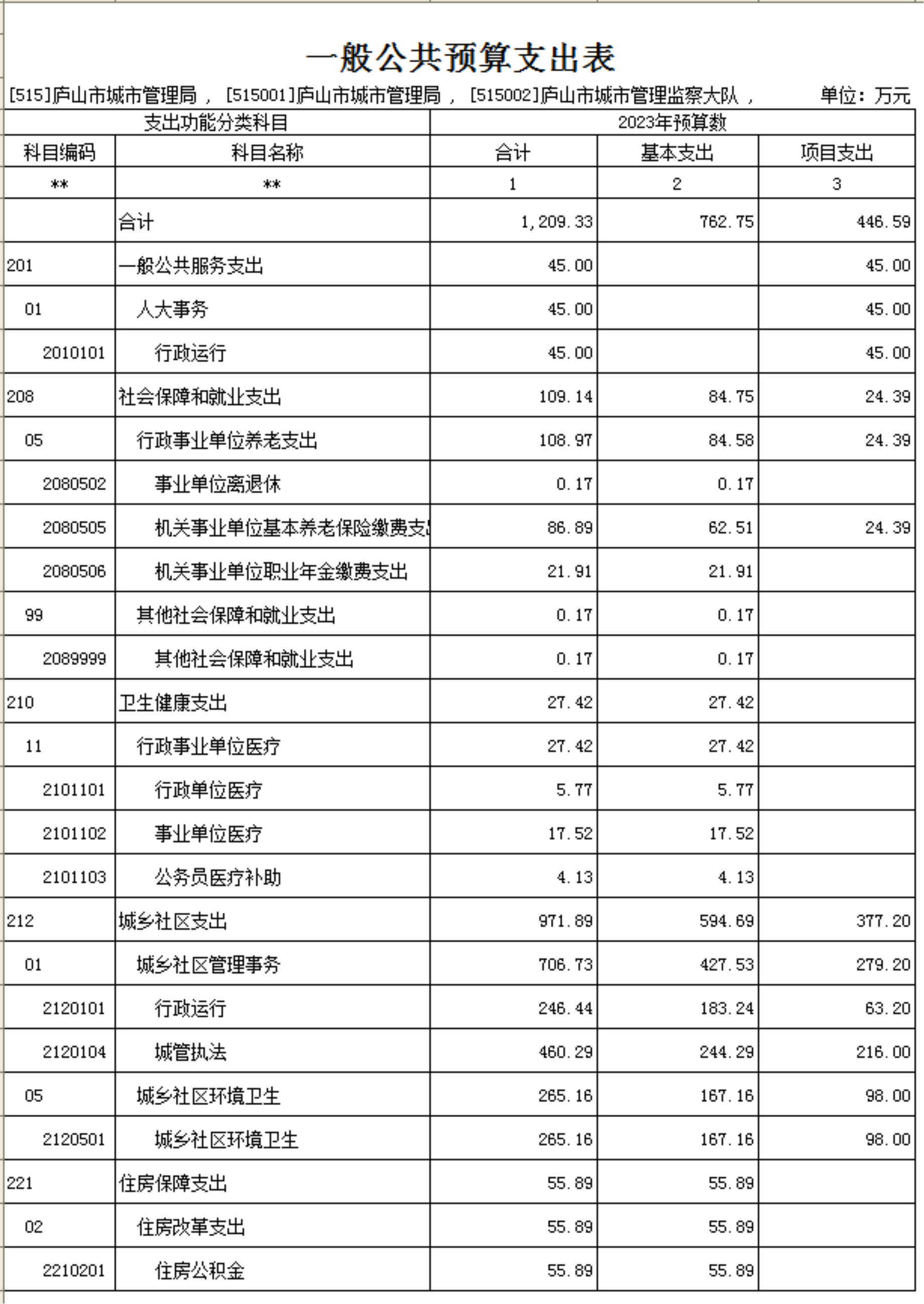 第二部分 庐山市城管局2023年部门预算表