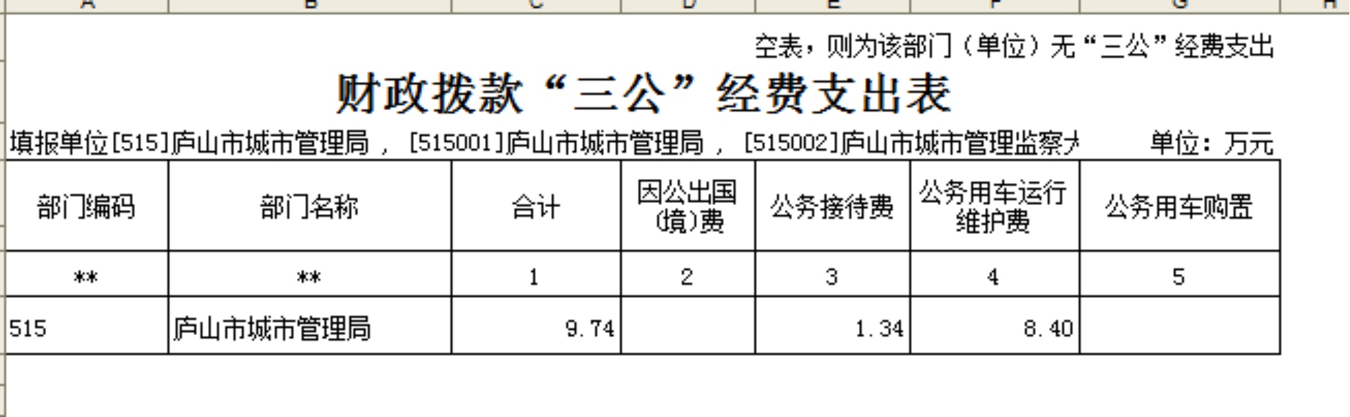 2023年庐山市城管局"三公"经费财政拨款安排9.74万元,其中: