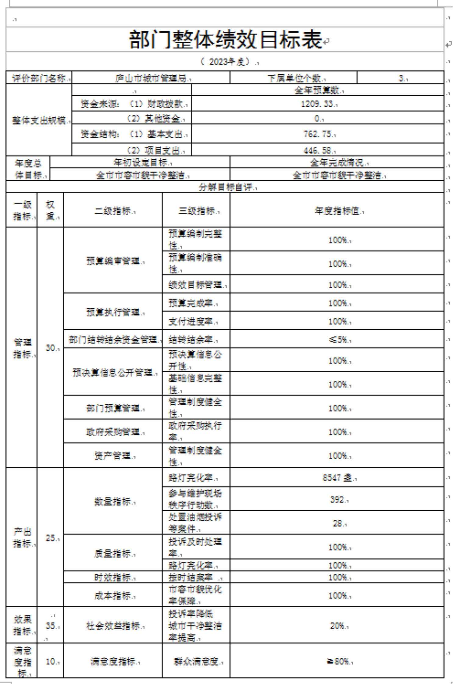 庐山市城管局2023年部门预算