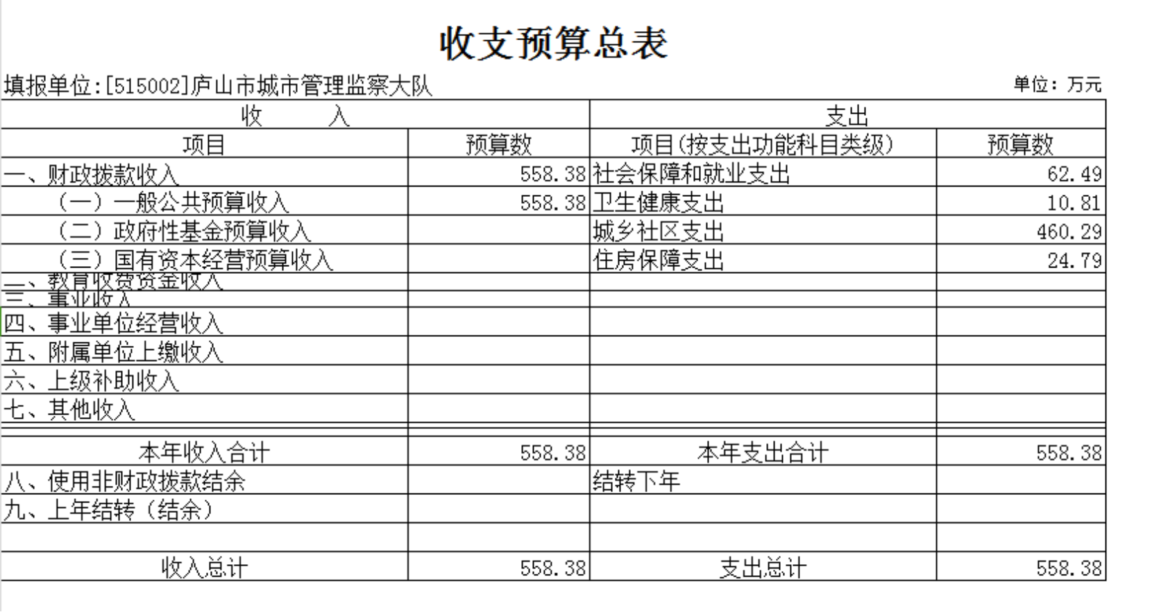 庐山市城市管理综合行政执法大队2023年单位预算