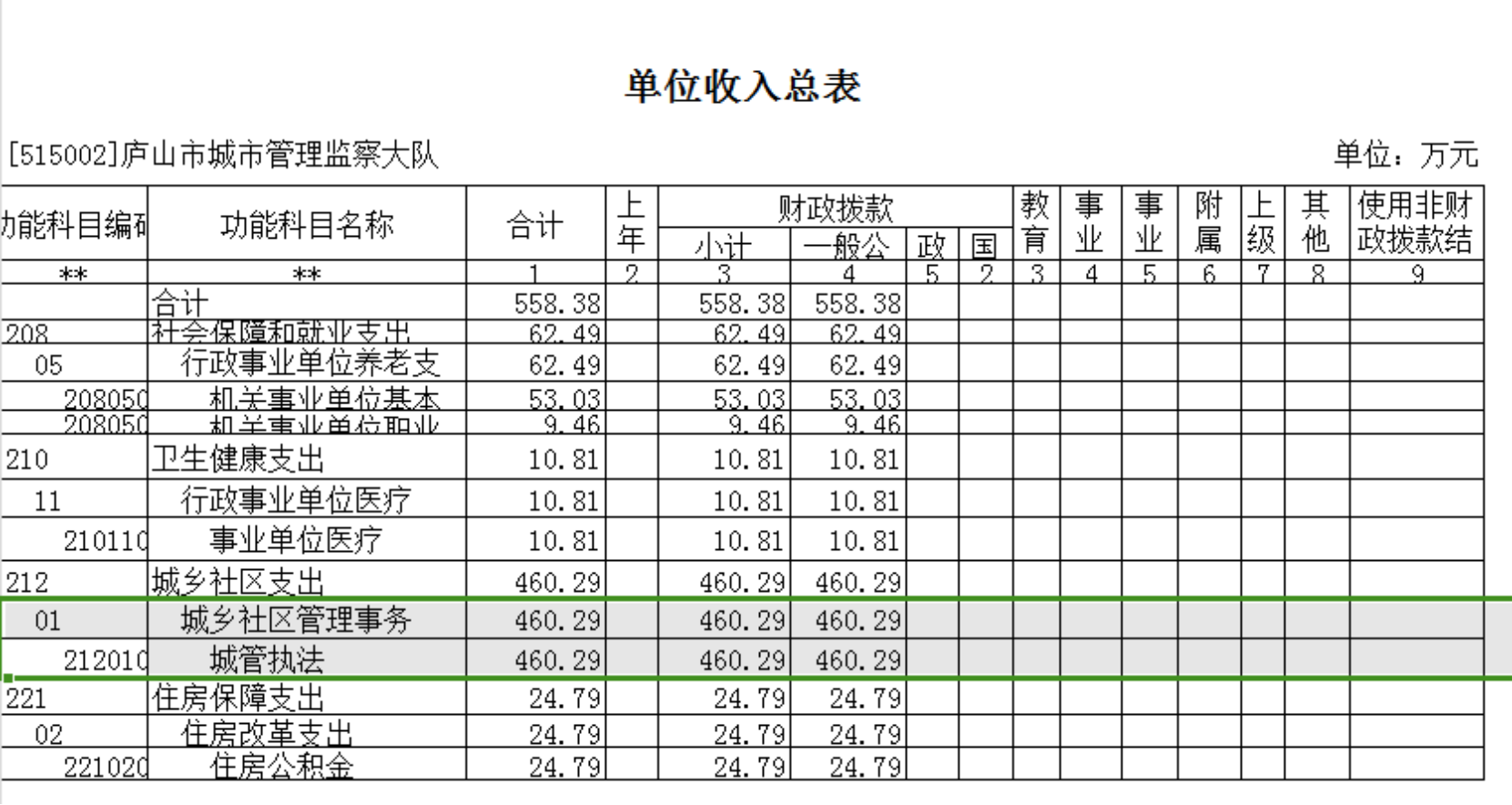 二、《单位收入总表》