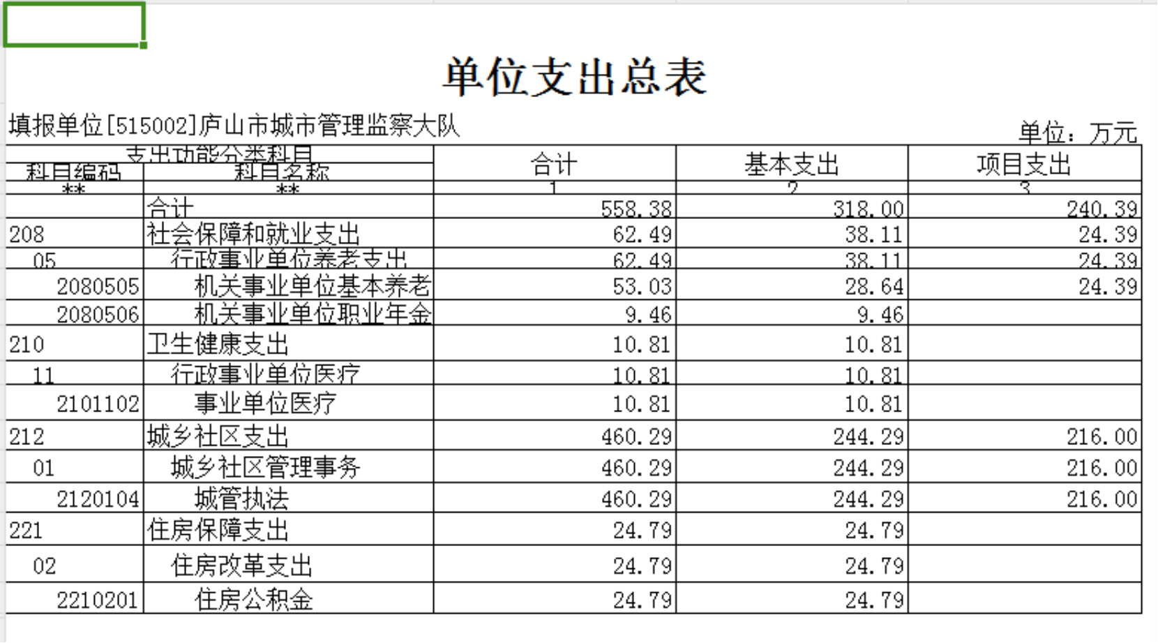三、《单位支出总表》