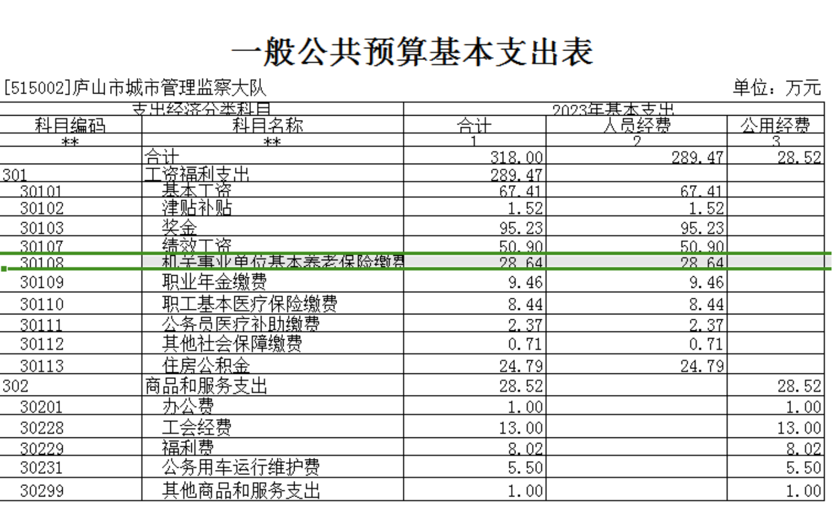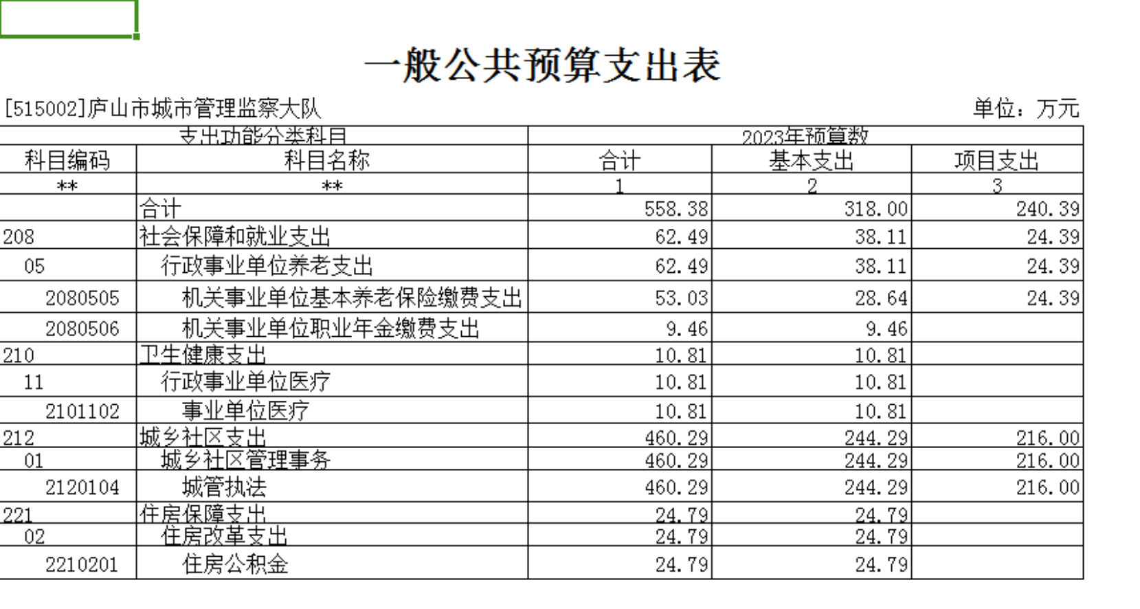 第二部分 庐山市城市管理综合行政执法大队2023年单位预算表
