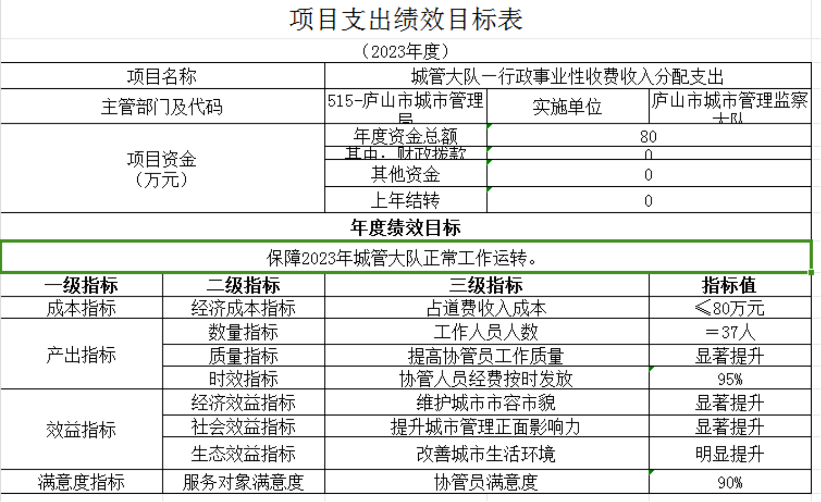 【城管大队】2023年市县部门预算公开表(本级).xls 城管大队2023-2025年中期财政规划表.xlsx 2023年项目支出绩效目标表(城管大队—罚没收入分配支出).xlsx 2023年项目支出绩效目标表(城管大队—行政事业性收费收入分配支出).xlsx 2023年项目支出绩效目标表(城管大队协管员工资).xlsx 2023年项目支出绩效目标表(城管大队协管员养老金).xlsx扫一扫在手机打开当前页