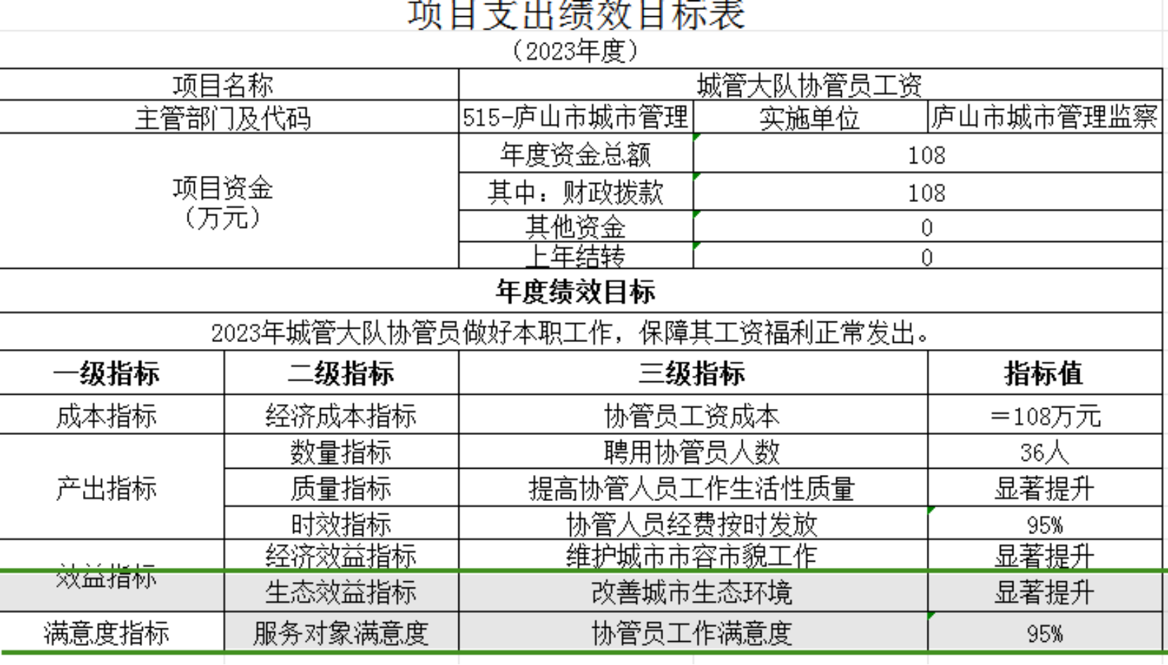 4)实施方案:关于2023年庐山市城管大队36名协管员工资全年工资108万元(2500元*36人*12月)用于城管大队协管员工资福利支出。