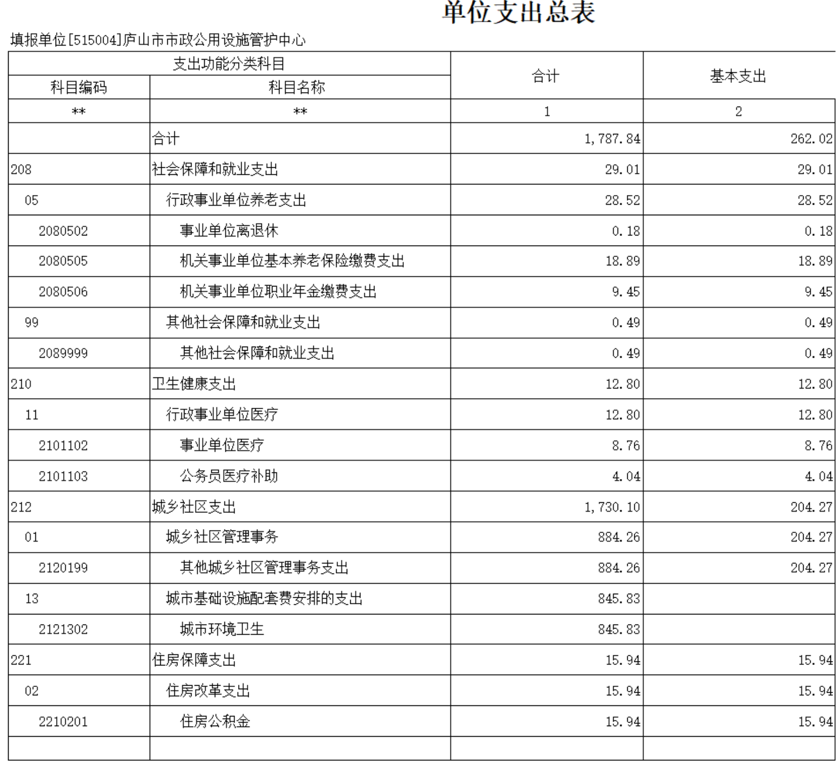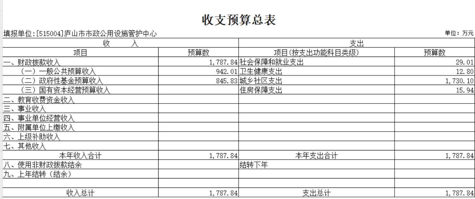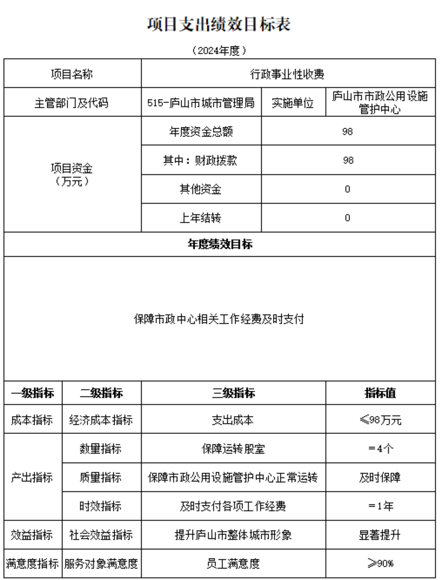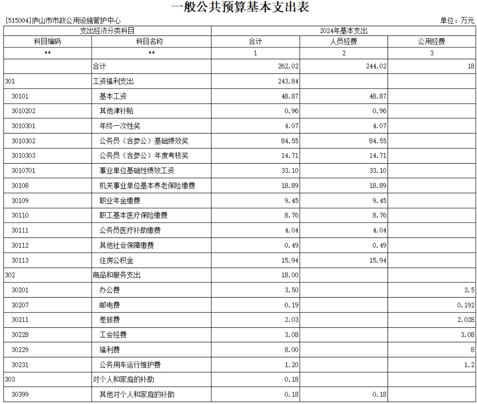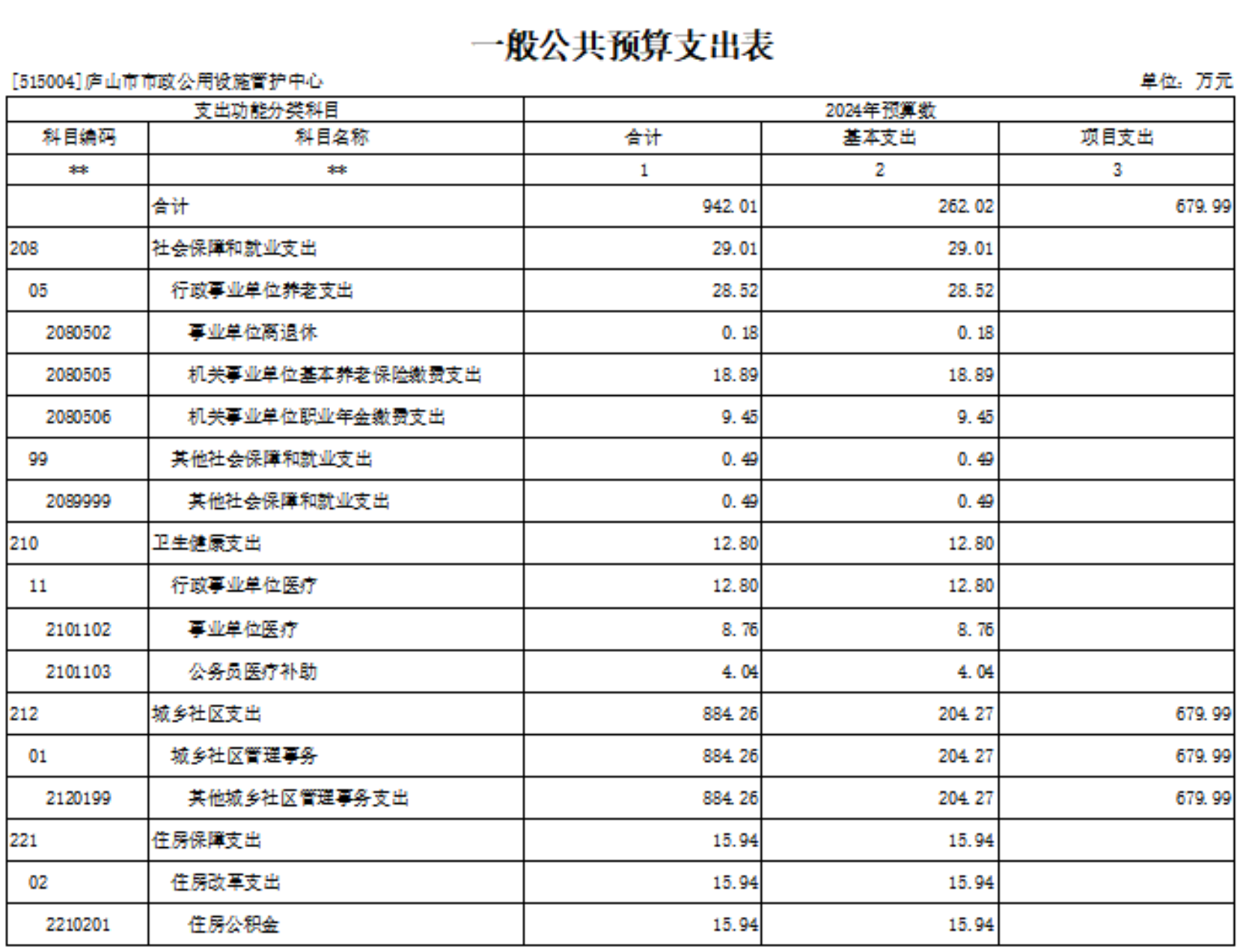 第二部分 庐山市市政公用设施管护中心2024年单位预算表