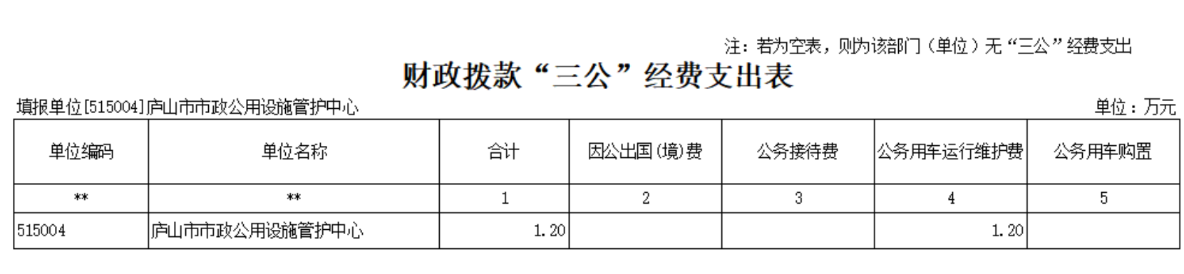 2024年庐山市市政公用设施管护中心"三公"经费财政拨款安排1.2万元,其中: