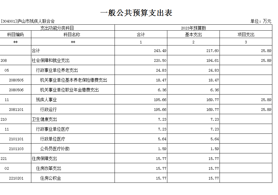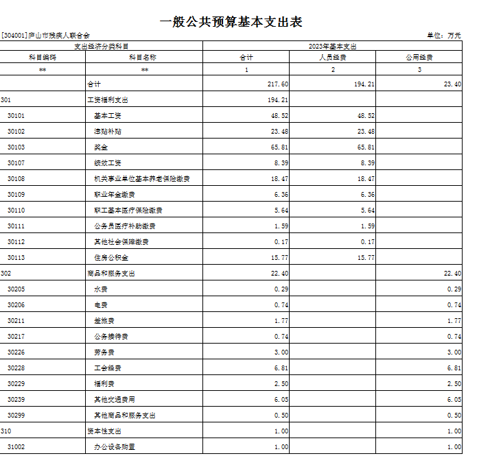 第二部分 庐山市残疾人联合会2023年部门预算表
