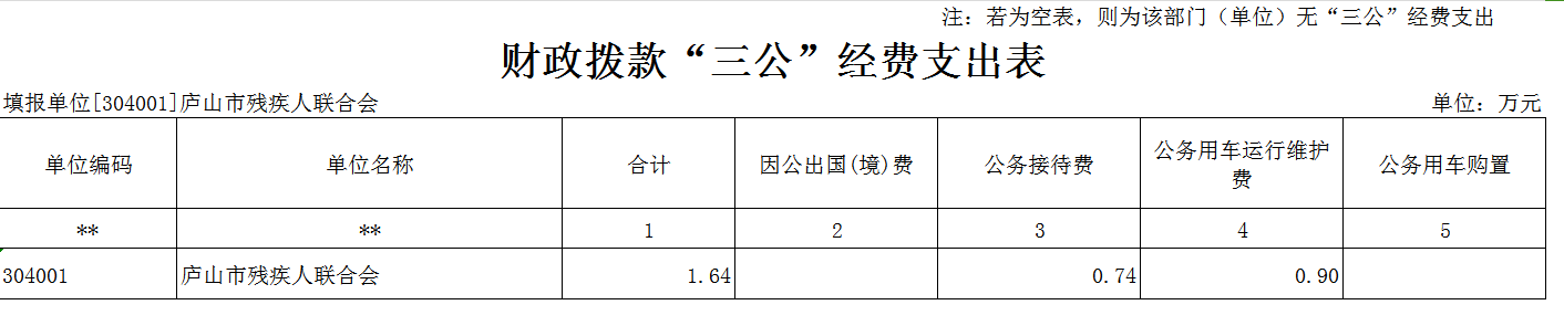 2023年庐山市残疾人联合会"三公"经费财政拨款安排1.64万元,其中: