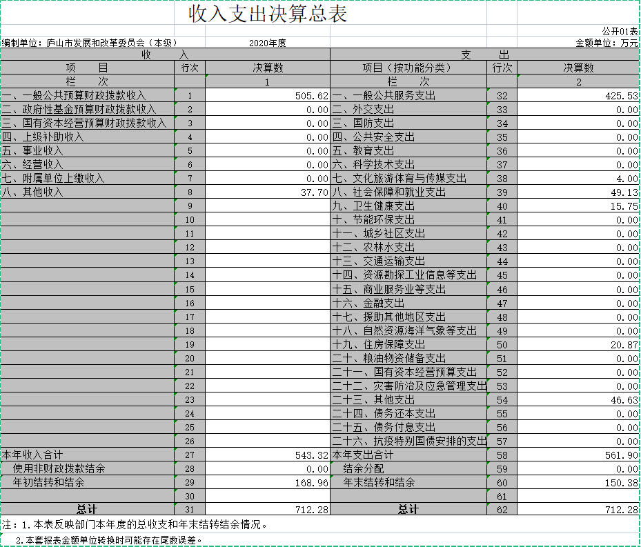 本部门2020年度支出总计712.28万元,其中本年支出合计561.9 万元,较2019年减少8.79万元,下降0.15 %,主要原因是:厉行节约;年末结转和结余150.37万元,较2019年减少18.59万元,下降11%,主要原因是:消耗结转资金。
