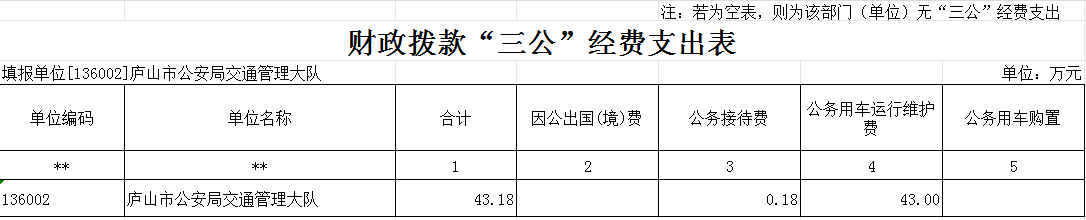 2024年庐山市公安局交通管理大队"三公"经费财政拨款安排43.18万元,其中: