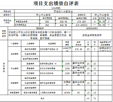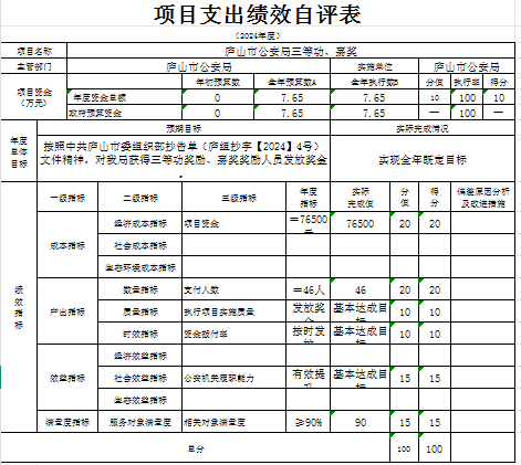 本单位“庐山市公安局三等功、嘉奖”项目支出绩效自评结果如下: