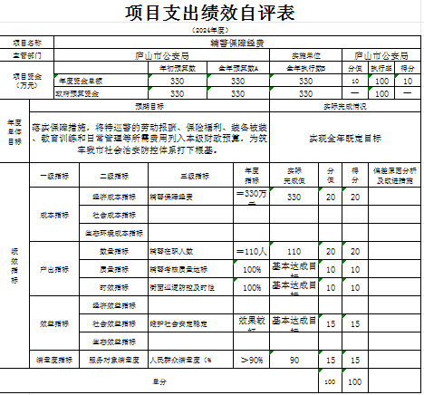 本单位“辅警保障经费”项目支出绩效自评结果如下: