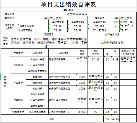 本单位“看守所经费保障”项目支出绩效自评结果如下: