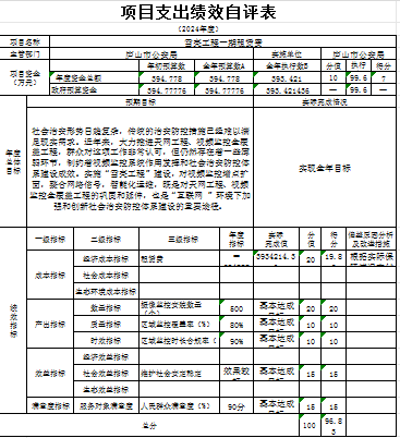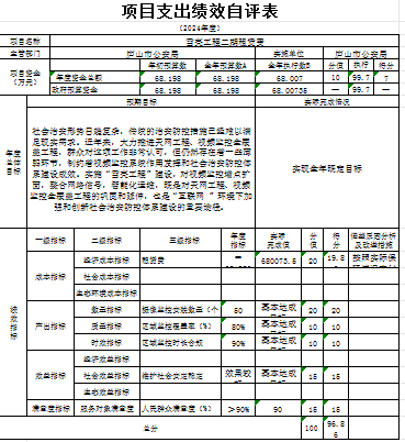 项目资金从资金落实、业务管理到财务管理、项目产出、项目效益,各级指标得分都很高,平均分达到了95分以上。