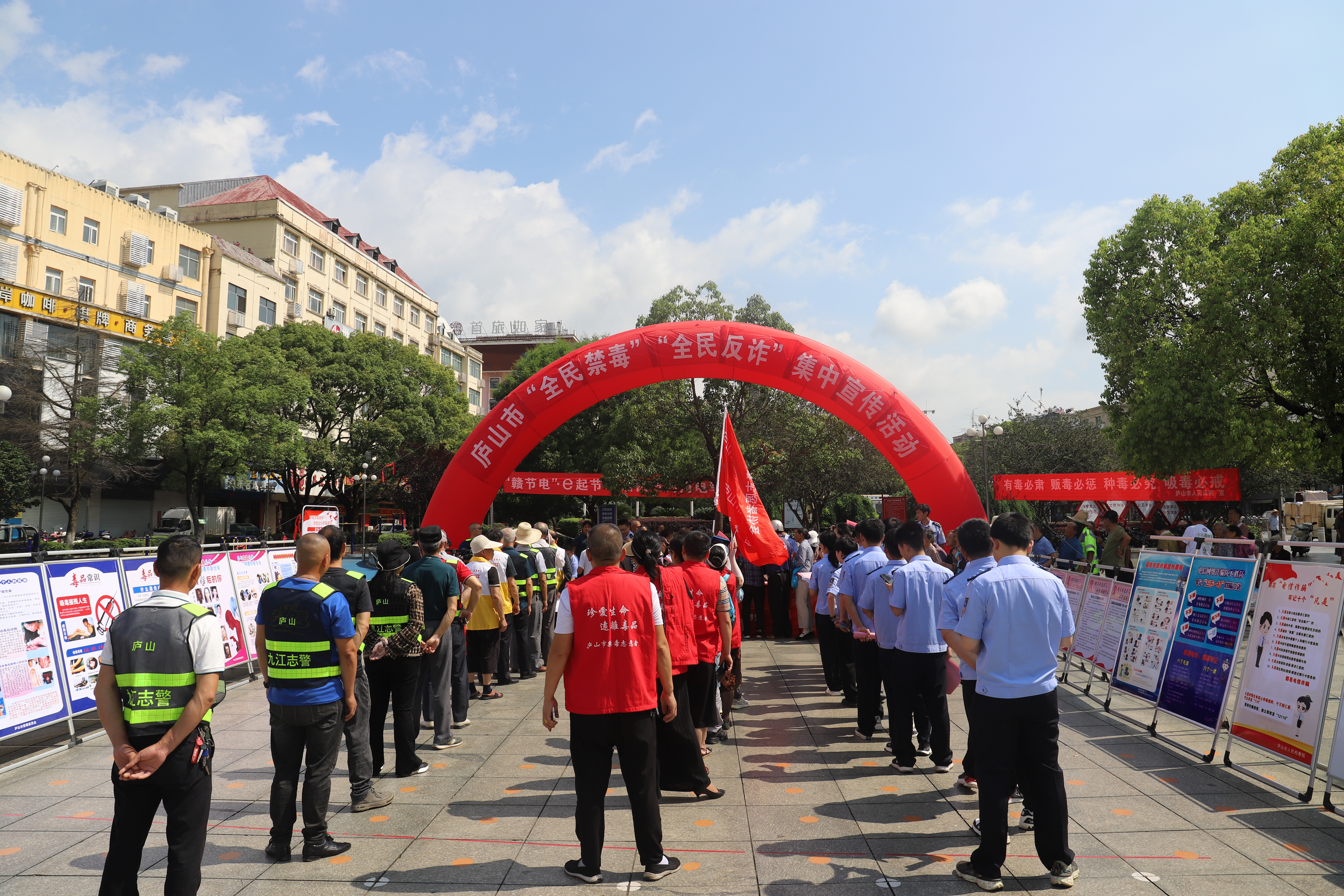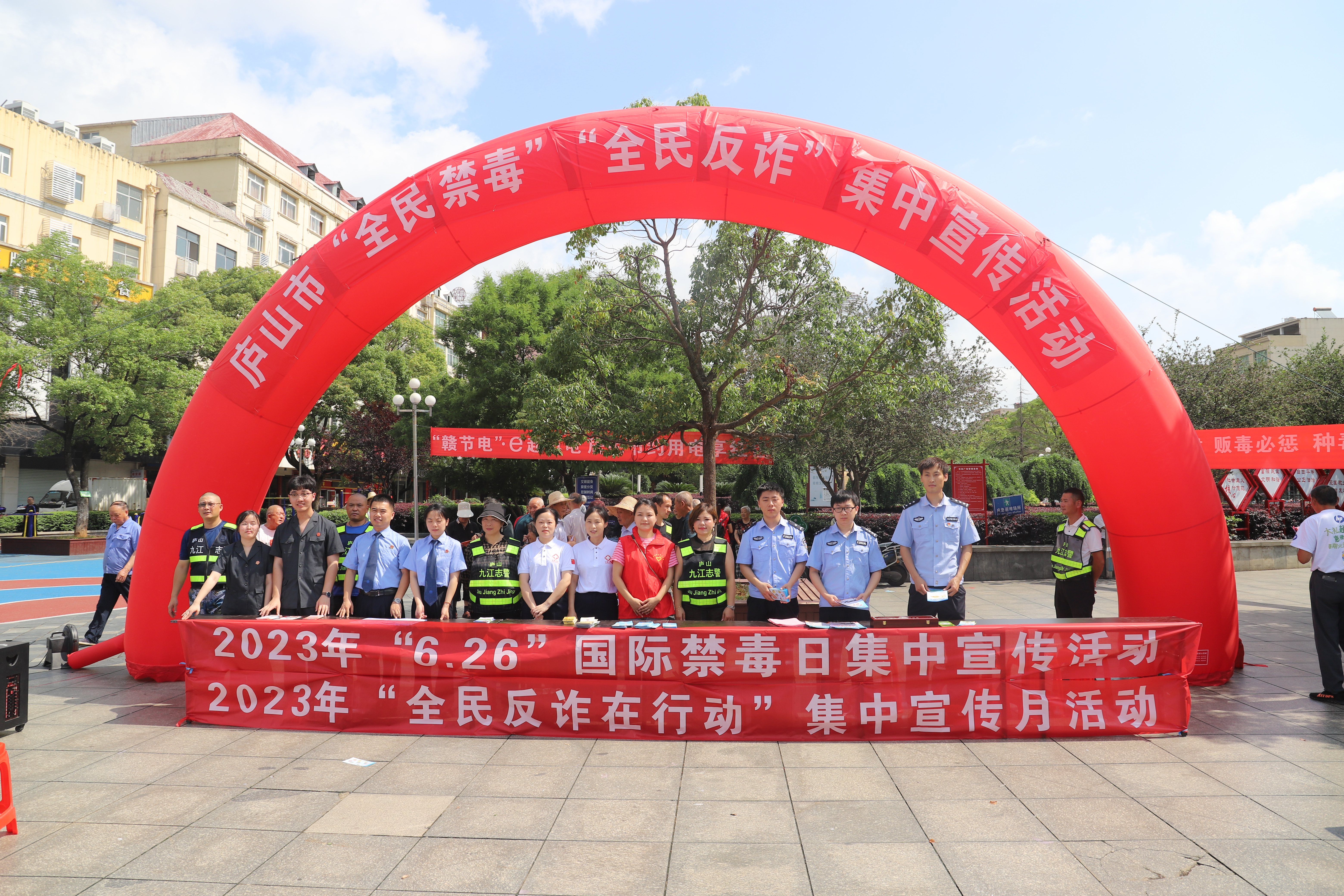 2023年6月26日,是第36个“国际禁毒日”,庐山市公安局以此为契机,联合检察院、法院、卫健委、团市委、南康镇等禁毒委成员单位及禁毒志愿者、九江志警庐山市协会在城区休闲广场举行以“全民禁毒、全民反诈”为主题的禁毒、反诈集中宣传活动。