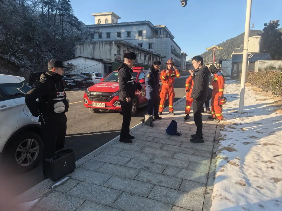 接警后,值班民警一边安抚汪先生情绪,一边快速引导其发送定位信息和现场照片。民警将汪先生提供的零散信息与辖区地形、历史搜救案例比对,研判出其被困位置为百药塘区域。考虑到山区积雪深厚、地形复杂,民警又调取周边群防群治资源,联系上熟悉这里山路的蓝天救援队队员担任向导,同时联动应急等部门,组建起一支临时救援队,火速奔赴现场。