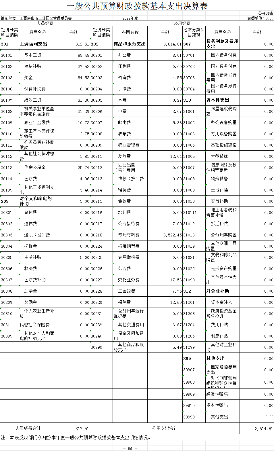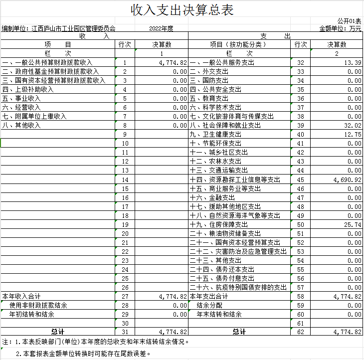 江西庐山工业园区管理委员会2022年度部门决算