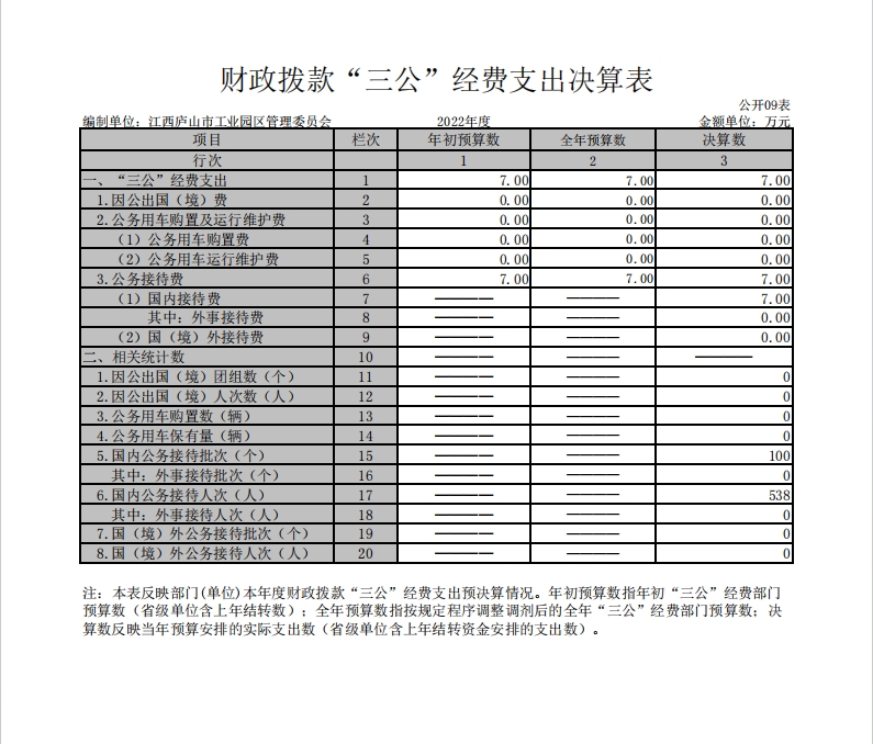 江西庐山工业园区管理委员会2022年度单位“三公”经费支出决算公开
