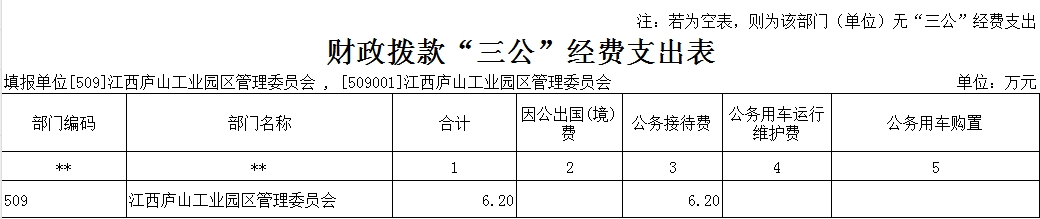 江西庐山工业园区管理委员会2023年度部门“三公”经费支出预算公开