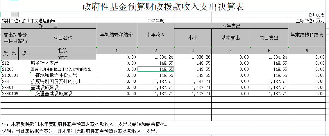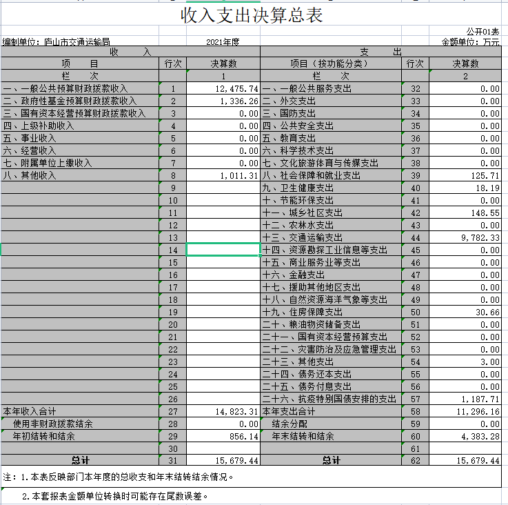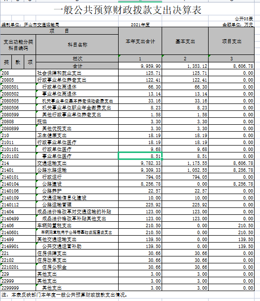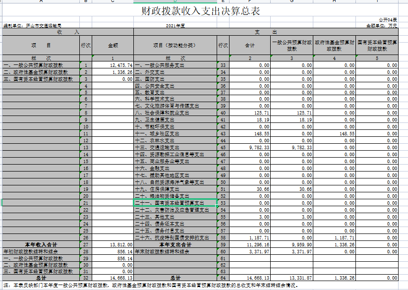 庐山市交通运输局2021年度部门汇总决算公开