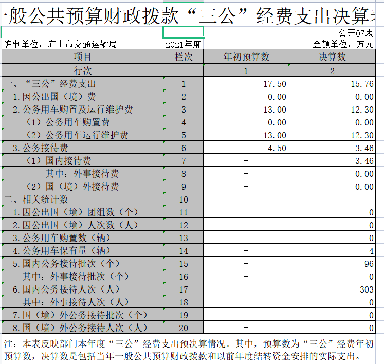 (四)“三公”经费支出:指用一般公共预算财政拨款安排的因公出国(境)费、公务用车购置及运行维护费和公务接待费。其中,因公出国(境)费反映单位公务出国(境)的