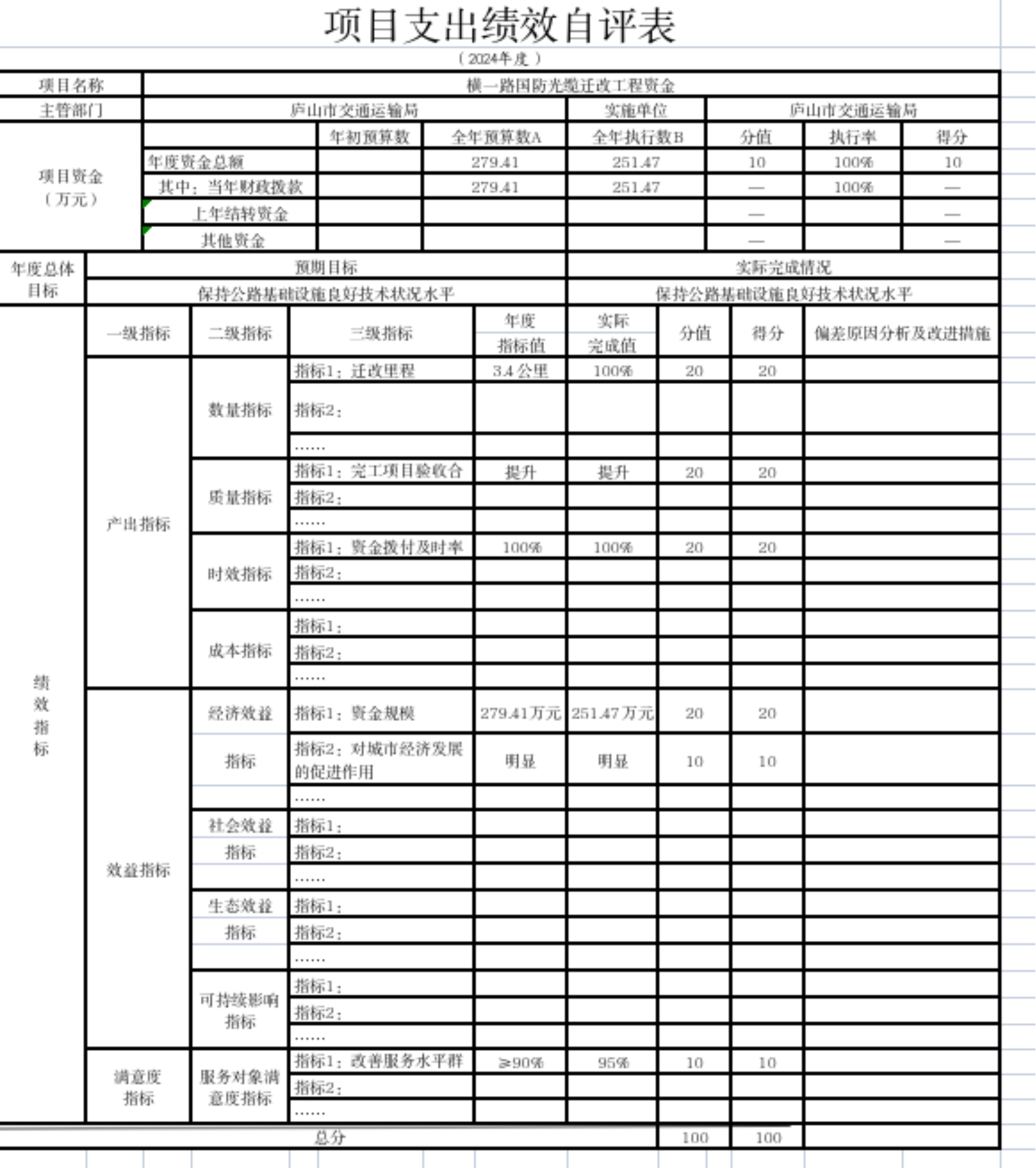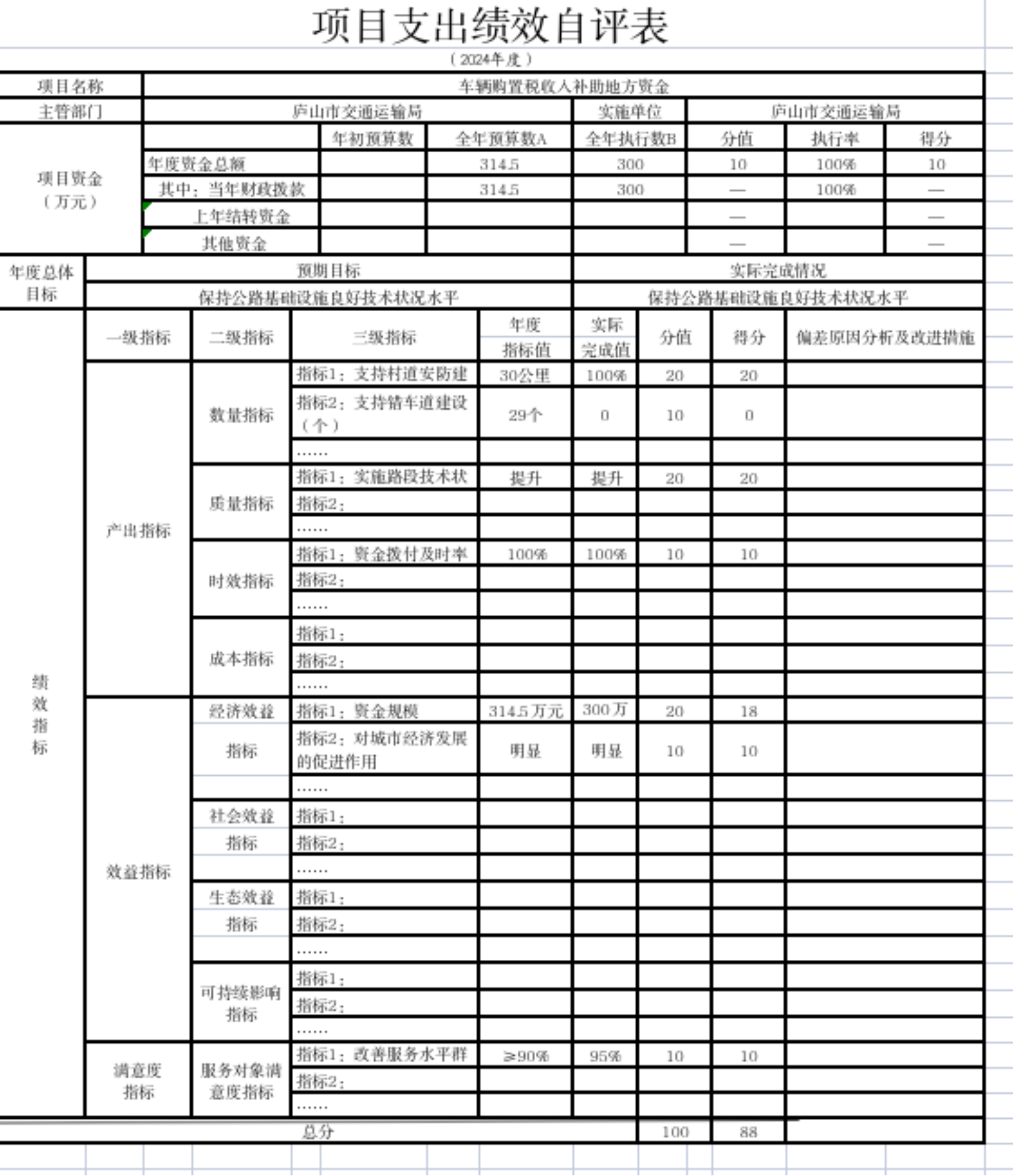 、庐山市交通运输局(本级)“城乡公交运营补贴项目”、“2024年成品油税费改革转移支付”、“车辆购置税收入补助地方资金”、“横一路国防光缆迁改工程资金”、“城市停车场项目”、“公路建设项目第三方费用”等项目支出绩效自评结果如下: