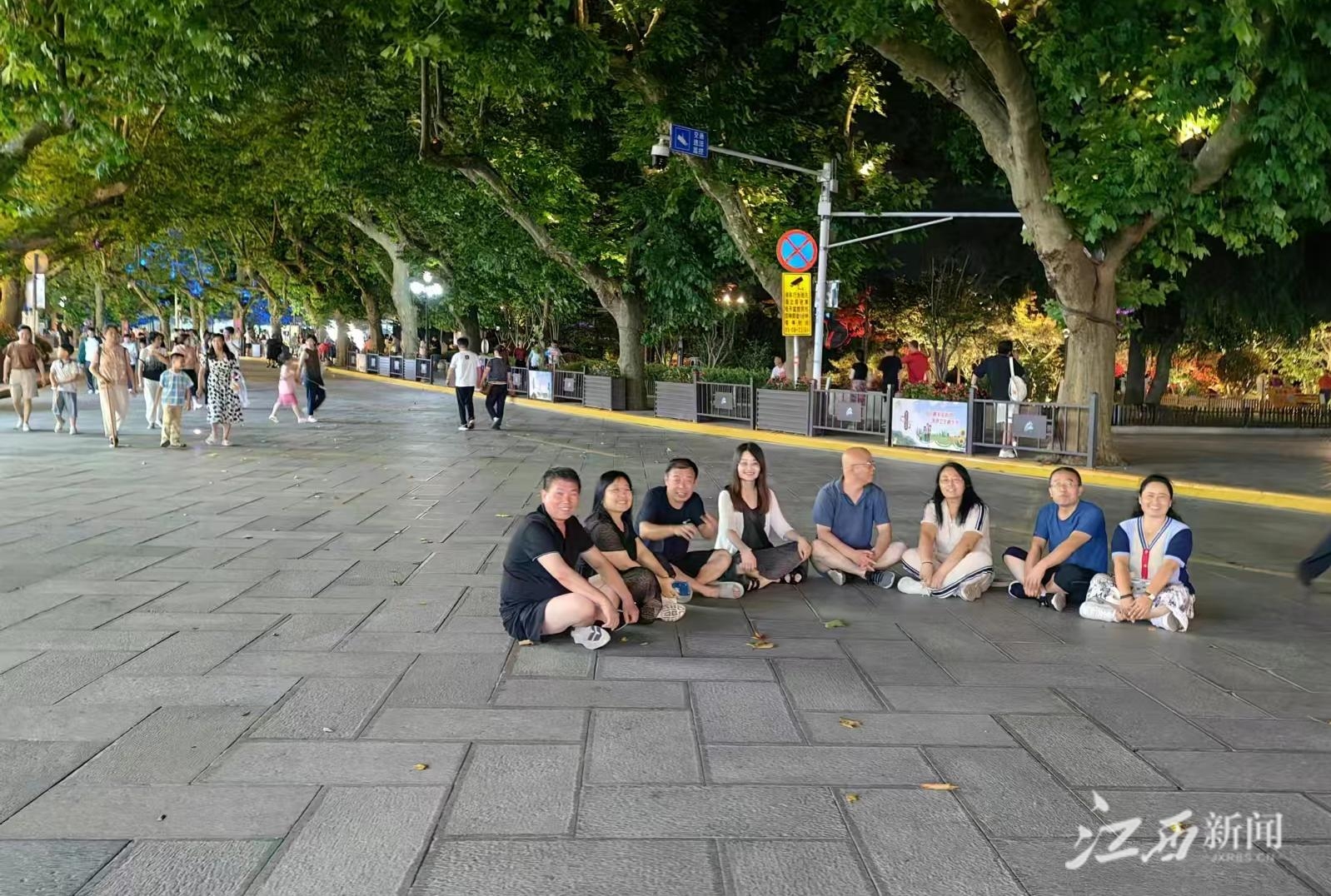 晚饭过后,牯岭街热闹不减,游客在马路上自由穿梭、自在散步,拍照打卡。
