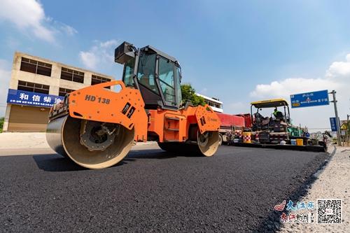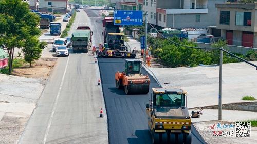 大江网/大江新闻客户端讯 通讯员韩俊烜摄影报道:8月23日,庐山市星子镇,G532九共线工人们正在将水泥砼路面改造升级为沥青砼路面。 庐山市交通部门将建设“四好农村路”作为重要民生工程来抓,对辖区范围破损和低等级公路进行改造提升,进一步改善农村交通条件,助力乡村振兴。