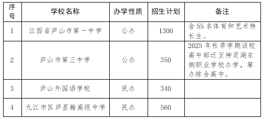 根据我市普通高中教育发展规划和学校办学条件,结合社会需求和普职教育协调发展的原则,经市教体局党组会研究,并报九江市教育局同意,现将2025年秋季学期全市各普通高中学校高一年级新生招生计划公布如下,接受社会监督。监督电话:0792-2661836。
