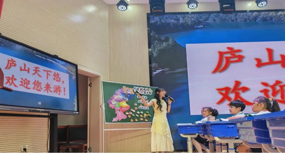 庐山市第一小学陶可心老师执教的《请到我的家乡来》以家乡旅游宣传视频导入,从自然景观、物产美食、非遗文化——蛟塘西河戏全面串联庐山市本土文化元素。以“庐山天下悠”为脉络,让学生系统感知家乡自然与人文魅力,构建完整家乡文化认知体系。