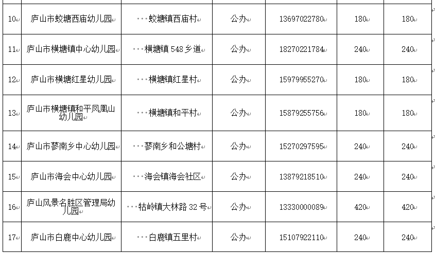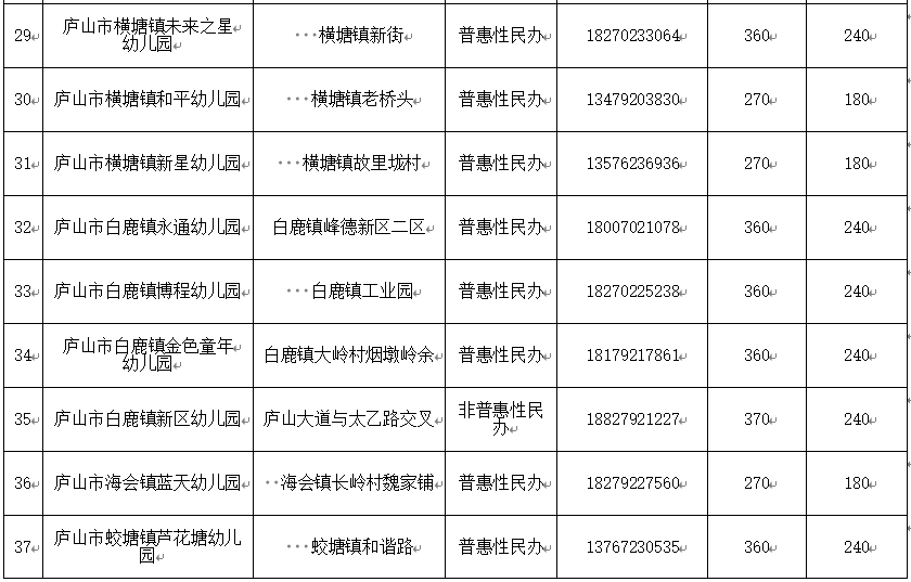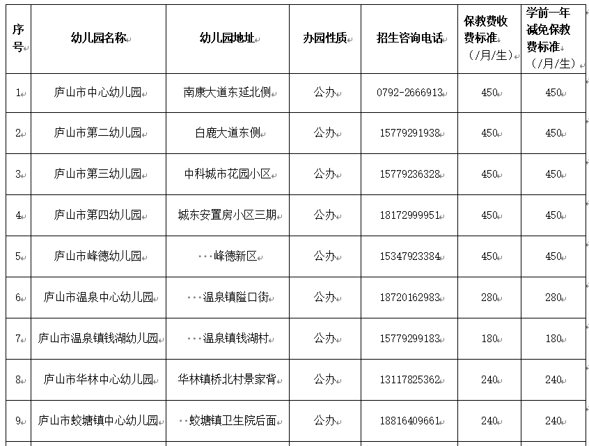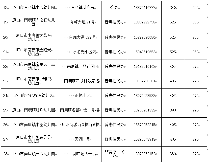 2025年秋庐山市幼儿园信息公示一览表