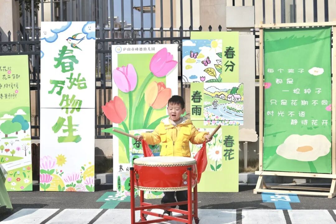 随着铿锵有力的鼓声响起,鸣鼓开耕!全园春耕实践正式开始,校园瞬间变成热闹的劳动乐园。小班和宝宝班的萌娃们轻手轻脚种下金银花、薄荷、紫苏、艾草等中草药,感受庐山传统中医药文化的独特魅力;中班幼儿精心栽种茶树,体验庐山茶文化的温润与雅致;大班哥哥姐姐率先行动,采摘去年种下的丰收果实,细心开垦菜地,依次种下小番茄、黄瓜、向日葵,用勤劳的小手播撒新的希望。