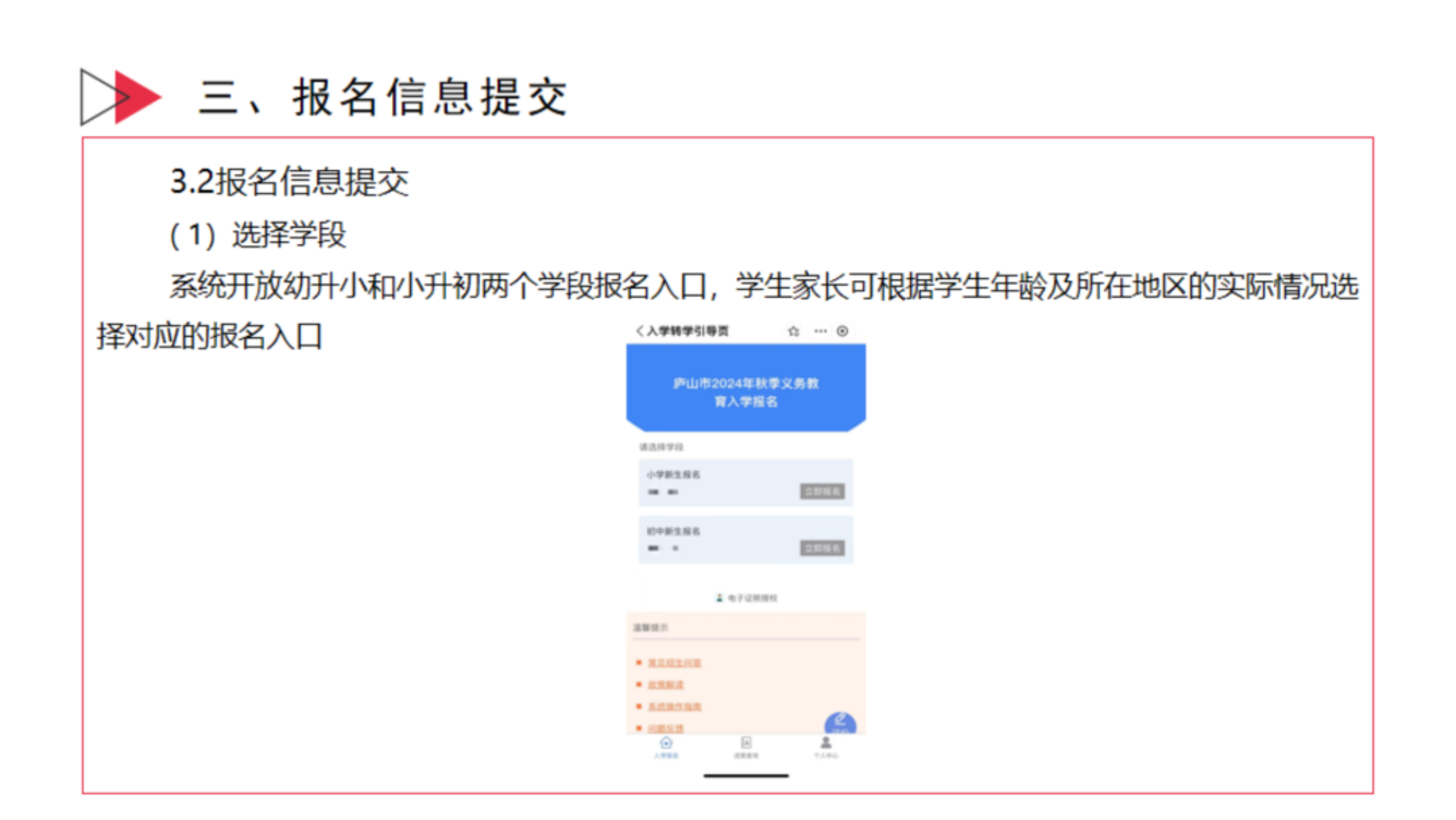 2.申请在城区公办义务教育学校入学的,一名学生仅能通过“庐山市2024义务教育入学报名系统”填报一次报名信息,可修改,不能重复报名。