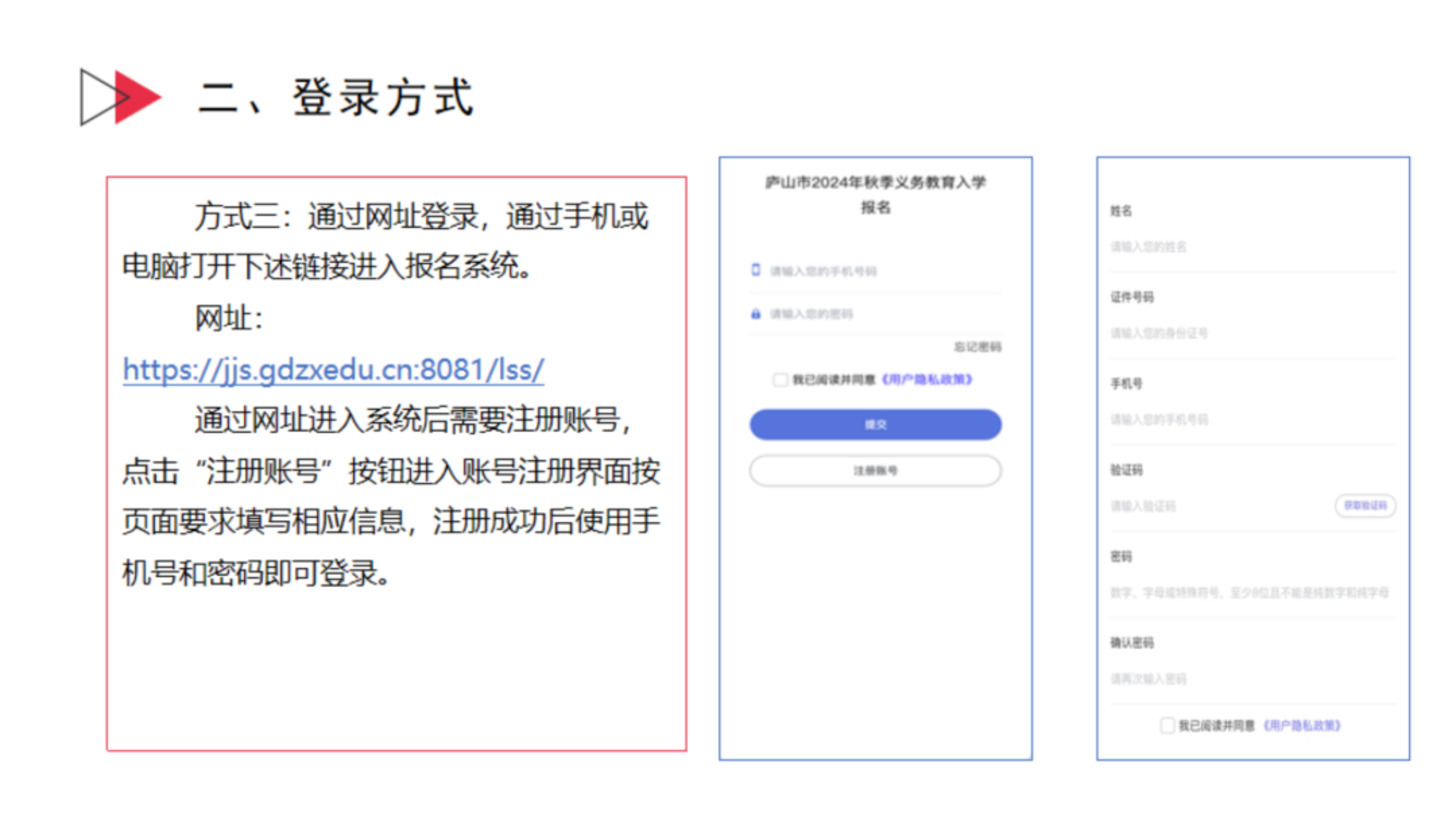 2.申请在城区公办义务教育学校入学的,一名学生仅能通过“庐山市2024义务教育入学报名系统”填报一次报名信息,可修改,不能重复报名。