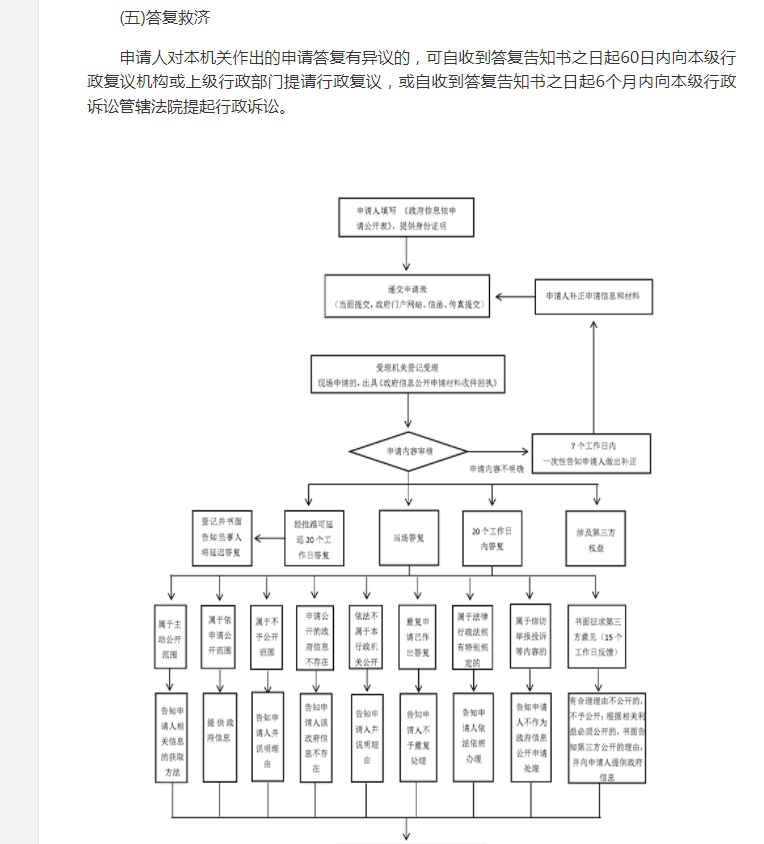 申请人对本机关作出的申请答复有异议的,可自收到答复告知书之日起60日内向本级行政复议机构或上级行政部门提请行政复议,或自收到答复告知书之日起6个月内向本级行政诉讼管辖法院提起行政诉讼。