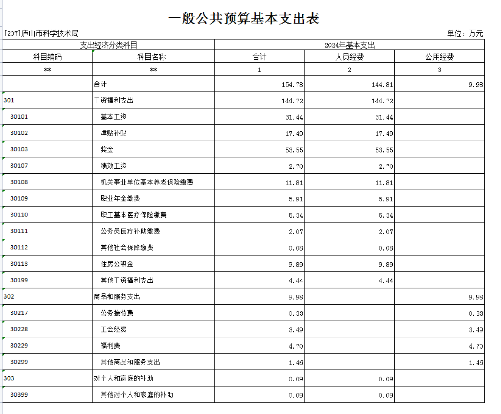 第三部分 庐山市科学技术局2024年部门预算情况说明