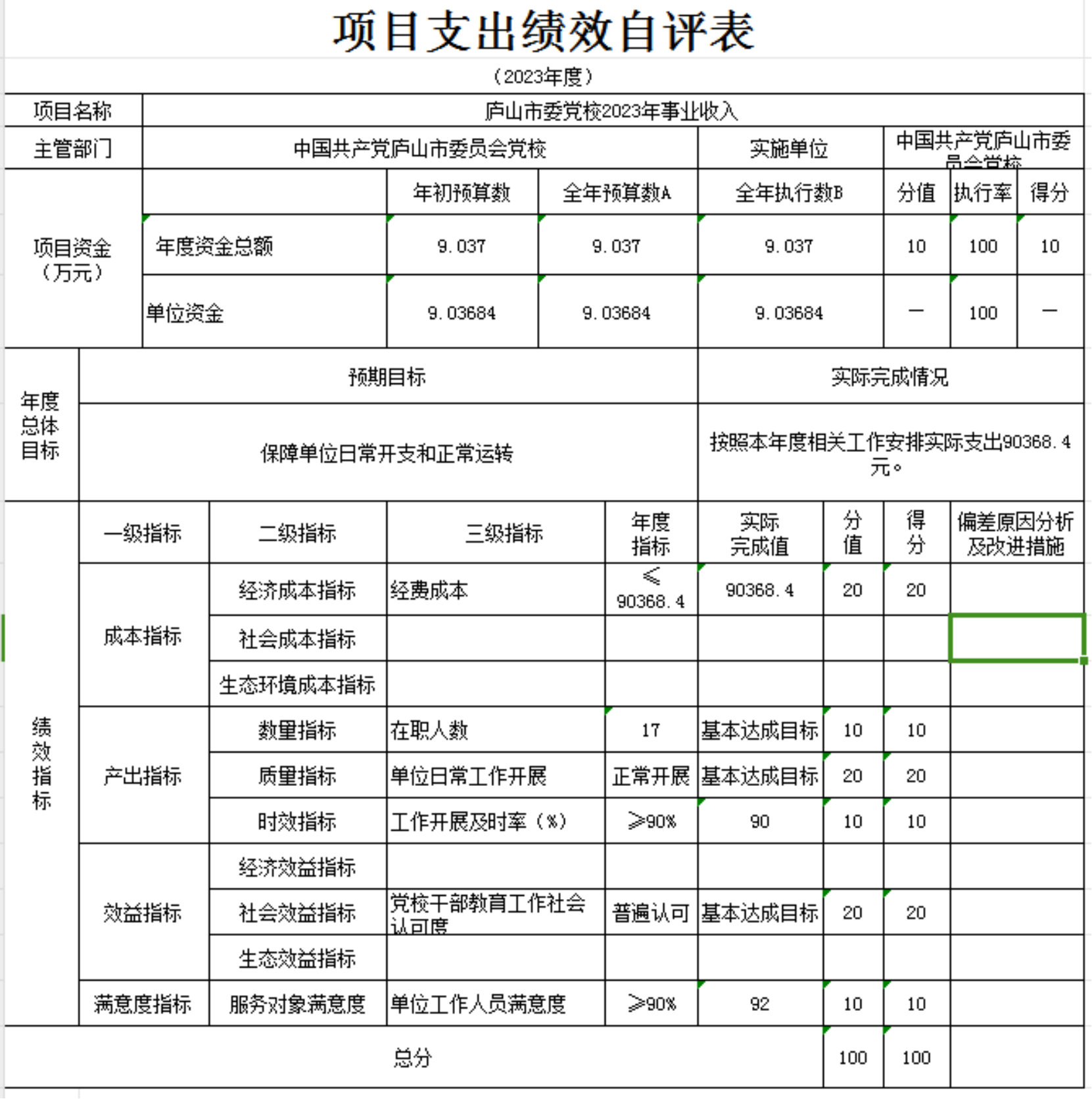 根据预算绩效管理要求,我单位组织对纳入2023年度部门预算范围的二级项目 4 个全面开展绩效自评,共涉及资金89.893万元,占项目支出总额的69.13%。其中,4个项目评价结果为“优”,0个项目评价结果为“良”,0个项目评价结果为“中”,0个项目评价结果为“差”。