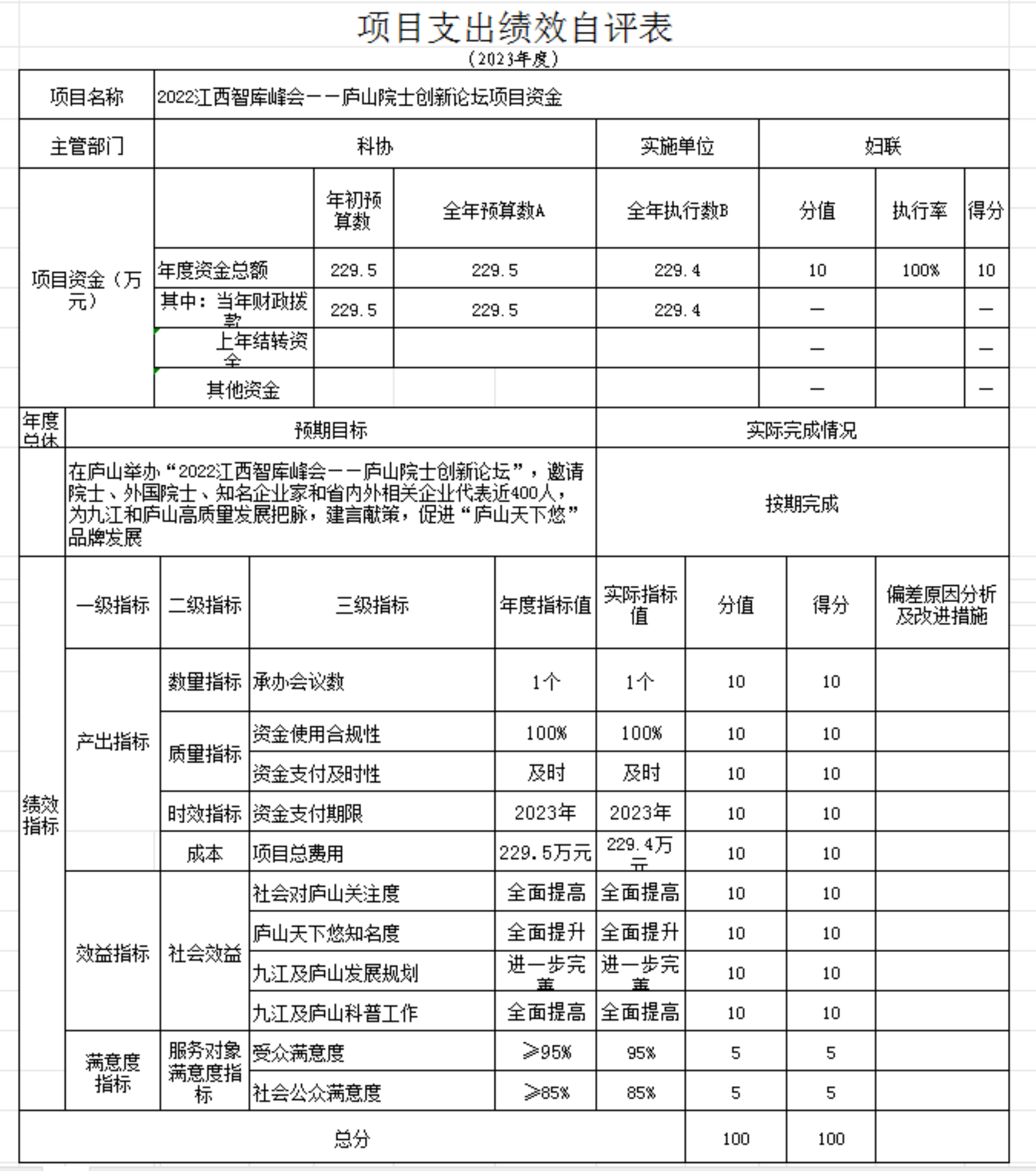 2022江西智库峰会——庐山院士创新论坛项目资金 | ||||||||||||