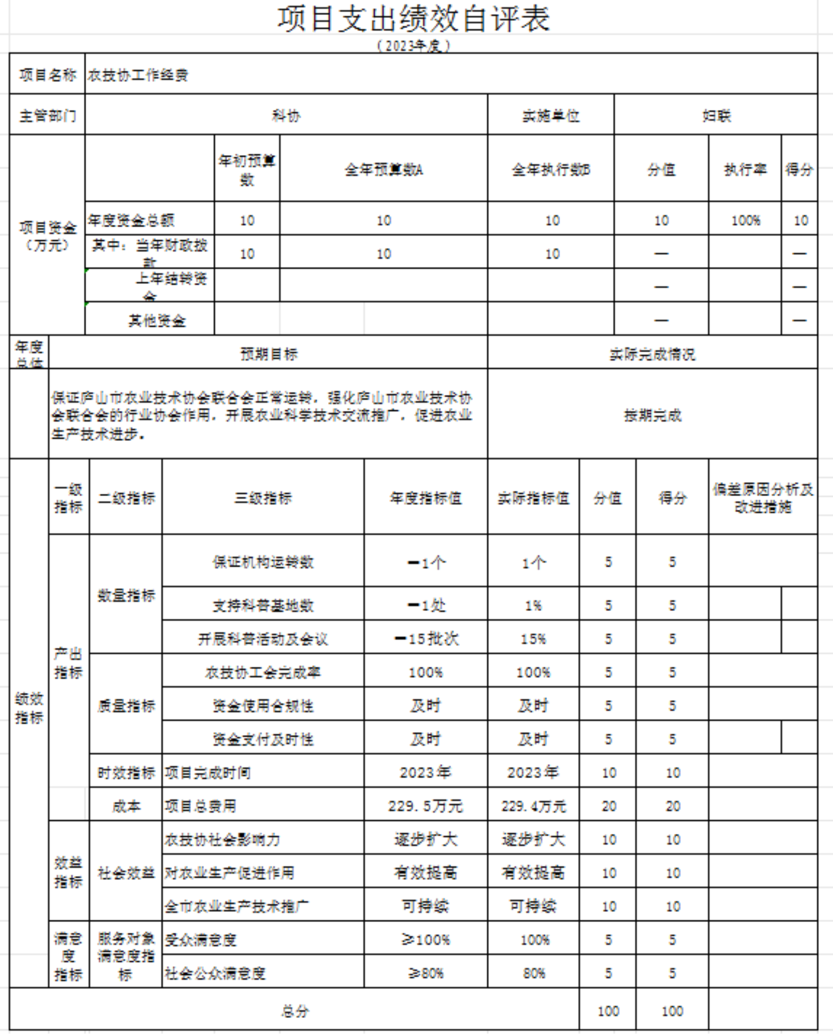 绩效管理工作在相关科室的具体指导和预算绩效管理工作领导小组组织下,根据《关于开展预算绩效自评及部门评价工作的通知》文件要求2023年度预算编制、执行、资金管理使用、项目组织管理、项目绩效目标、资金管理使用实际效果、绩效自评等及时、全面的开展绩效自评工作,经过认真开展自查自评,我会省级福利彩票公益金支持残疾人事业发展项目,绩效目标完成情况好,与年初设定的绩效目标无偏差,项目资金执行率100%,项目绩效自评为优。