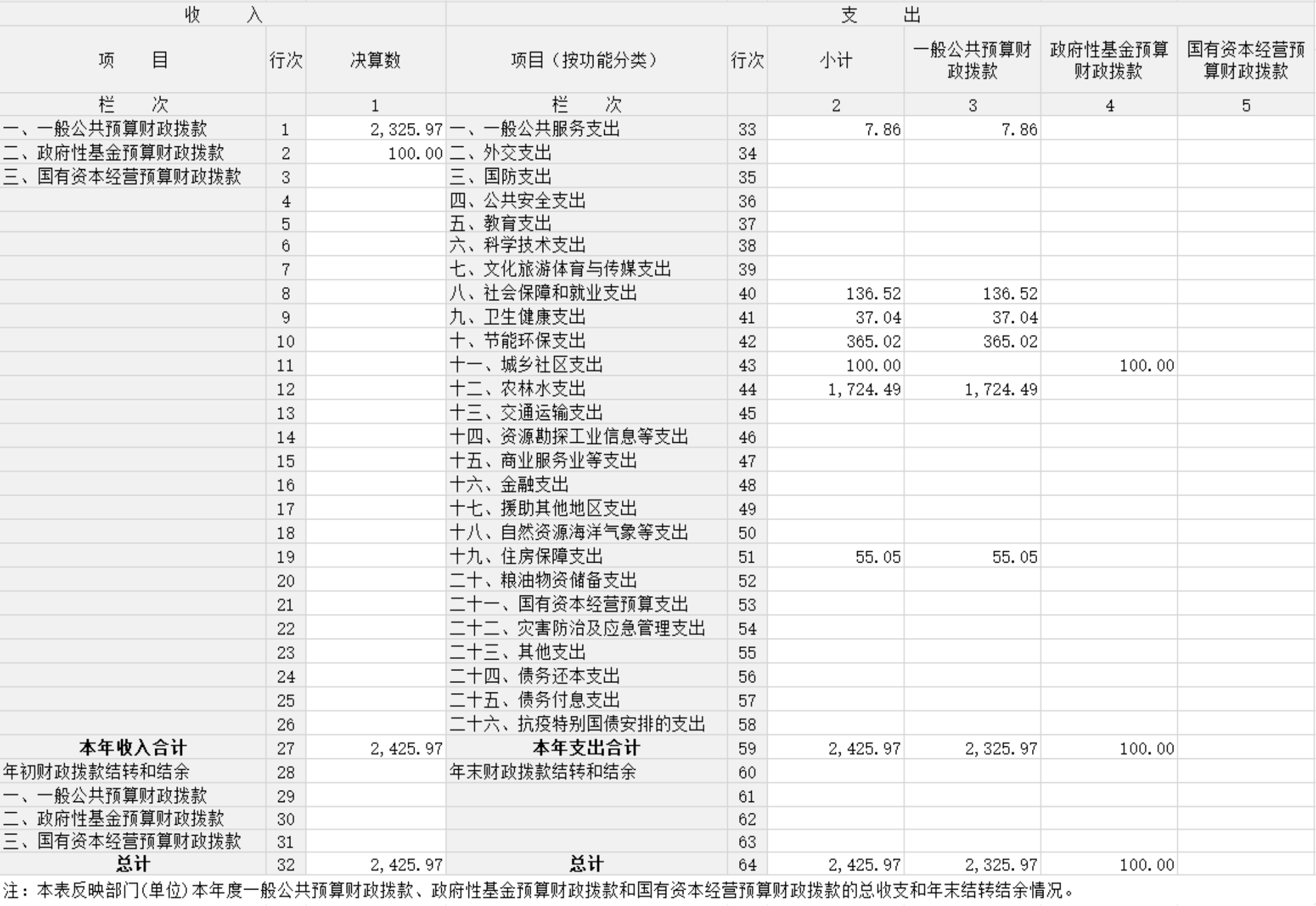 收入支出决算总表