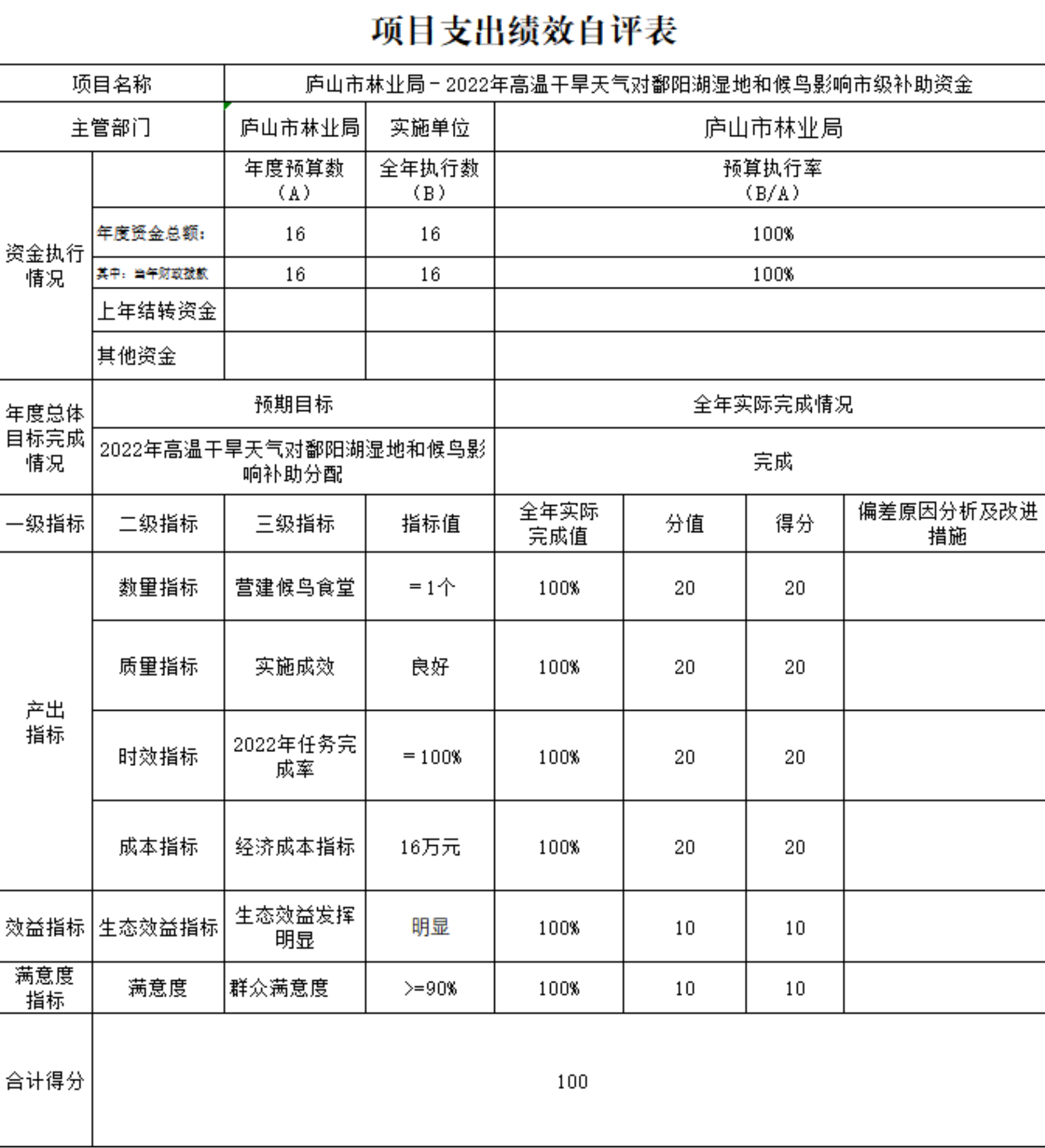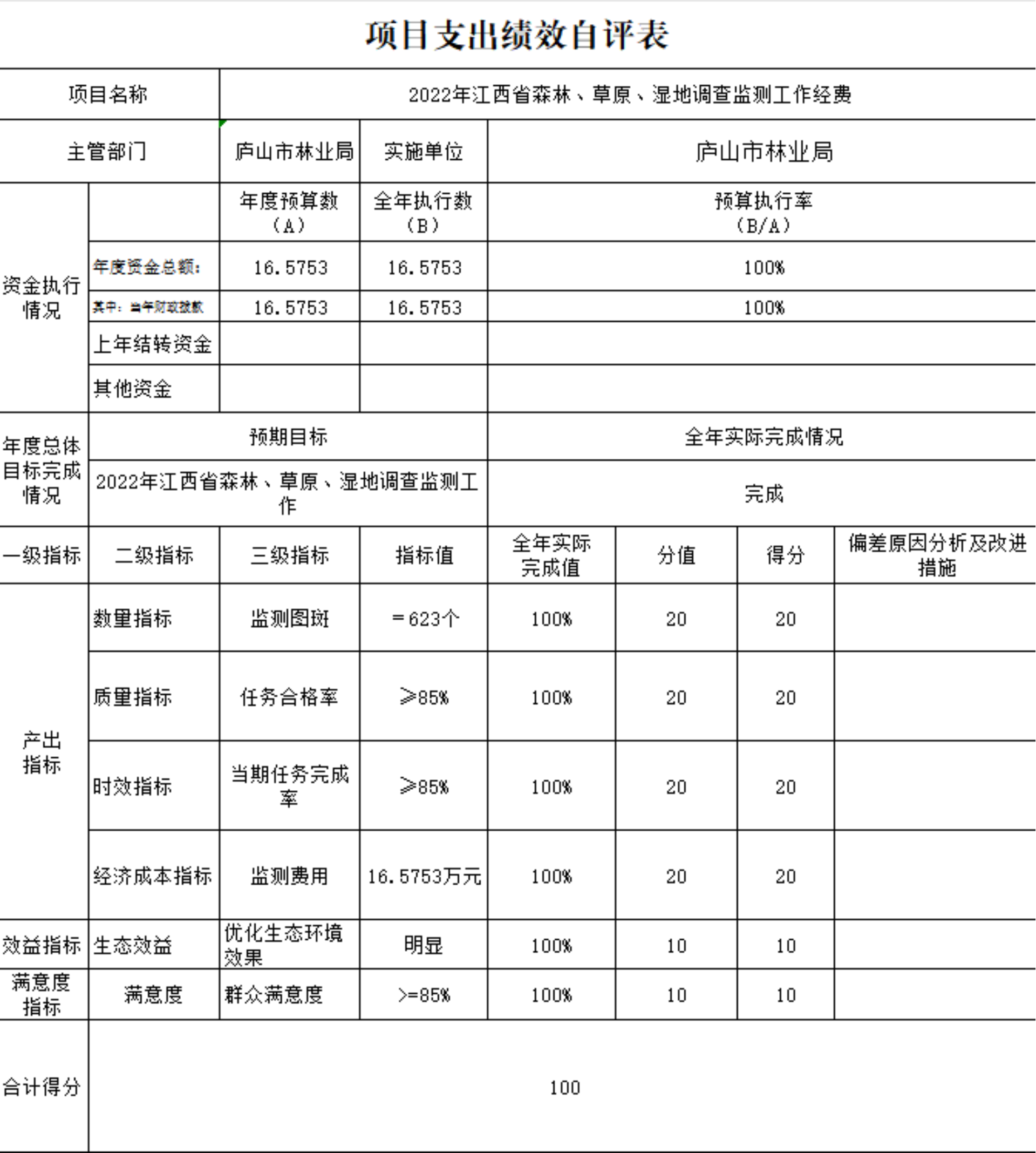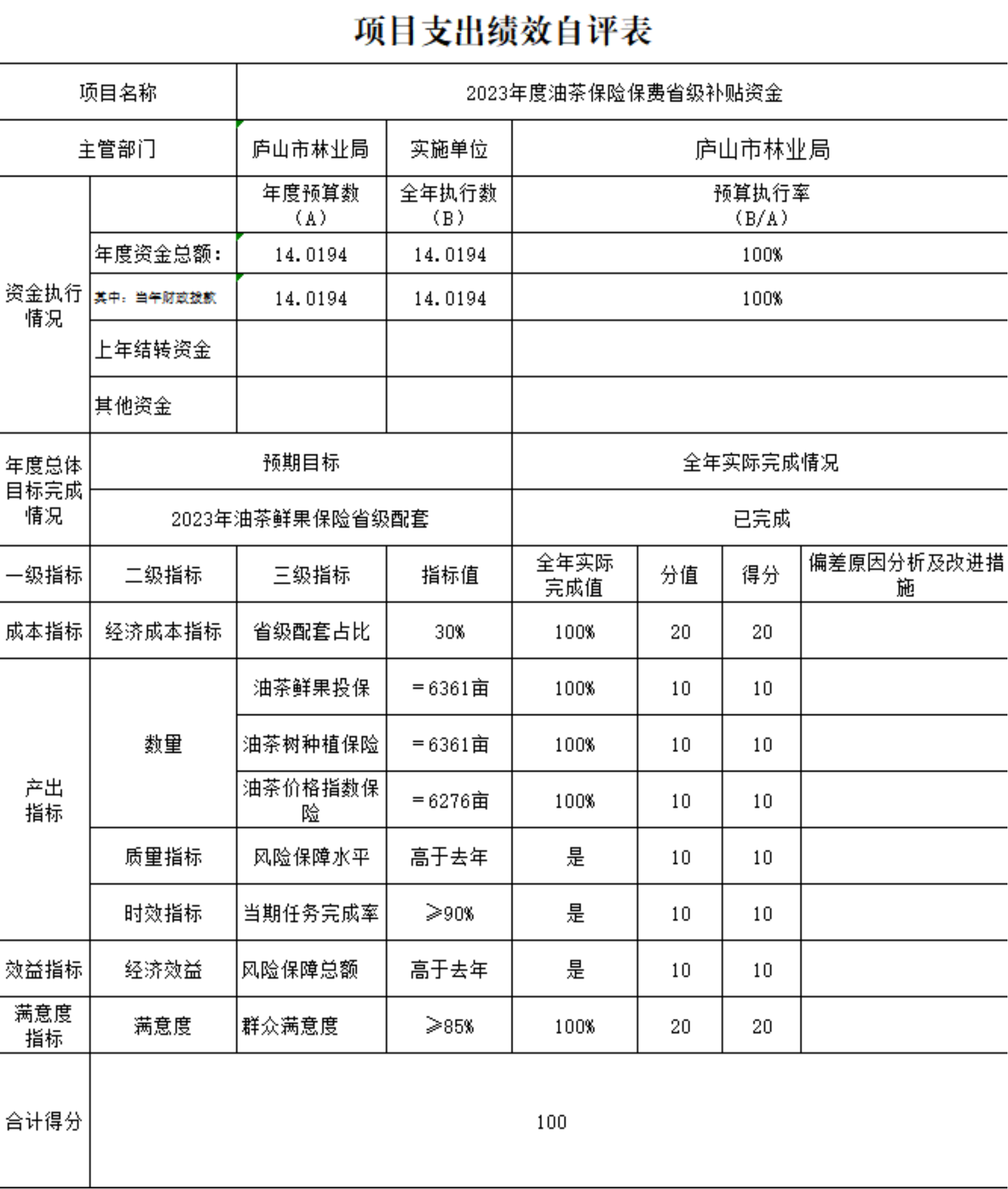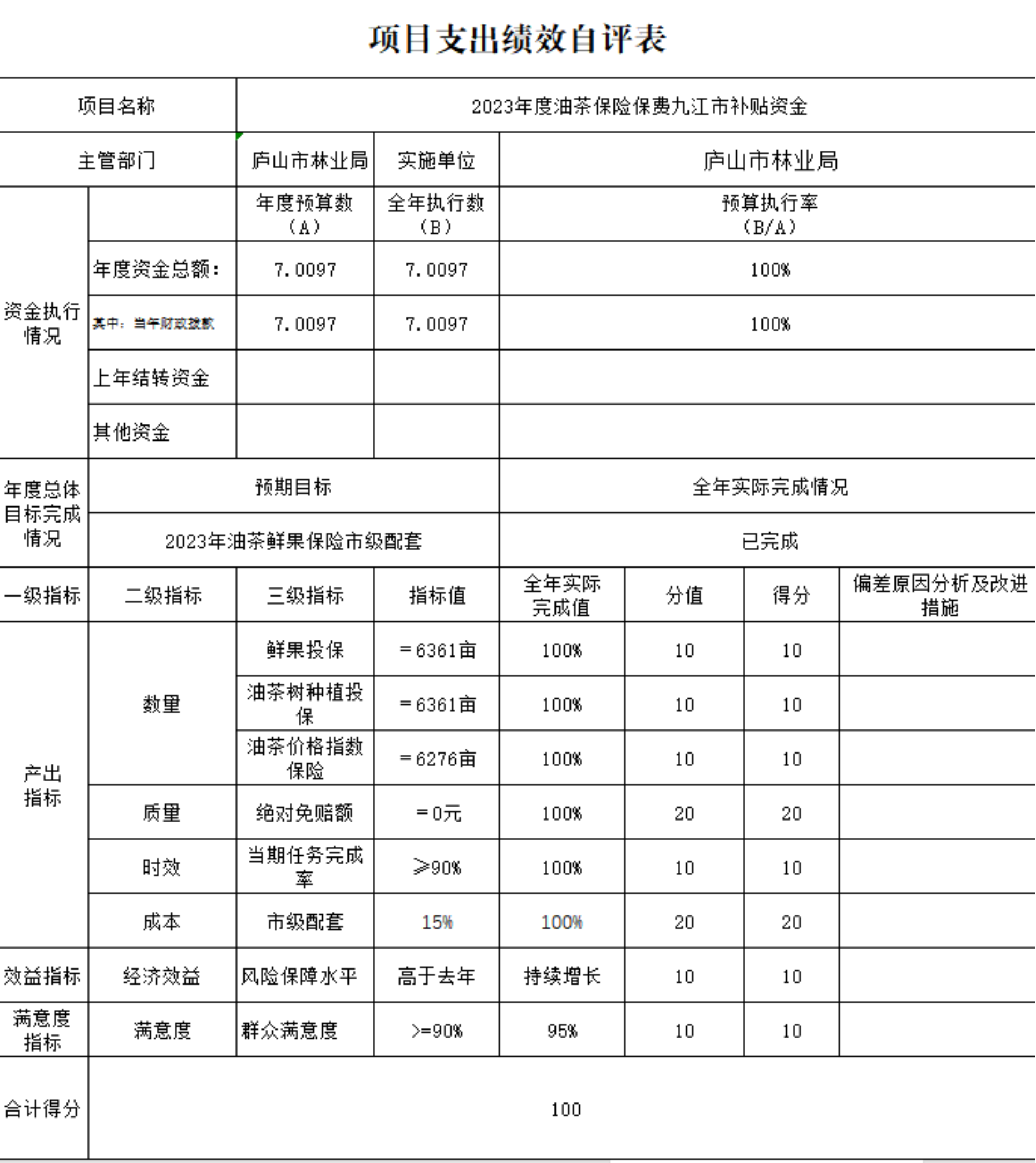 产出数量指标分值20分,实际得分20分。2023年度,实现县、镇、村三级林长全覆盖,已完成该指标。