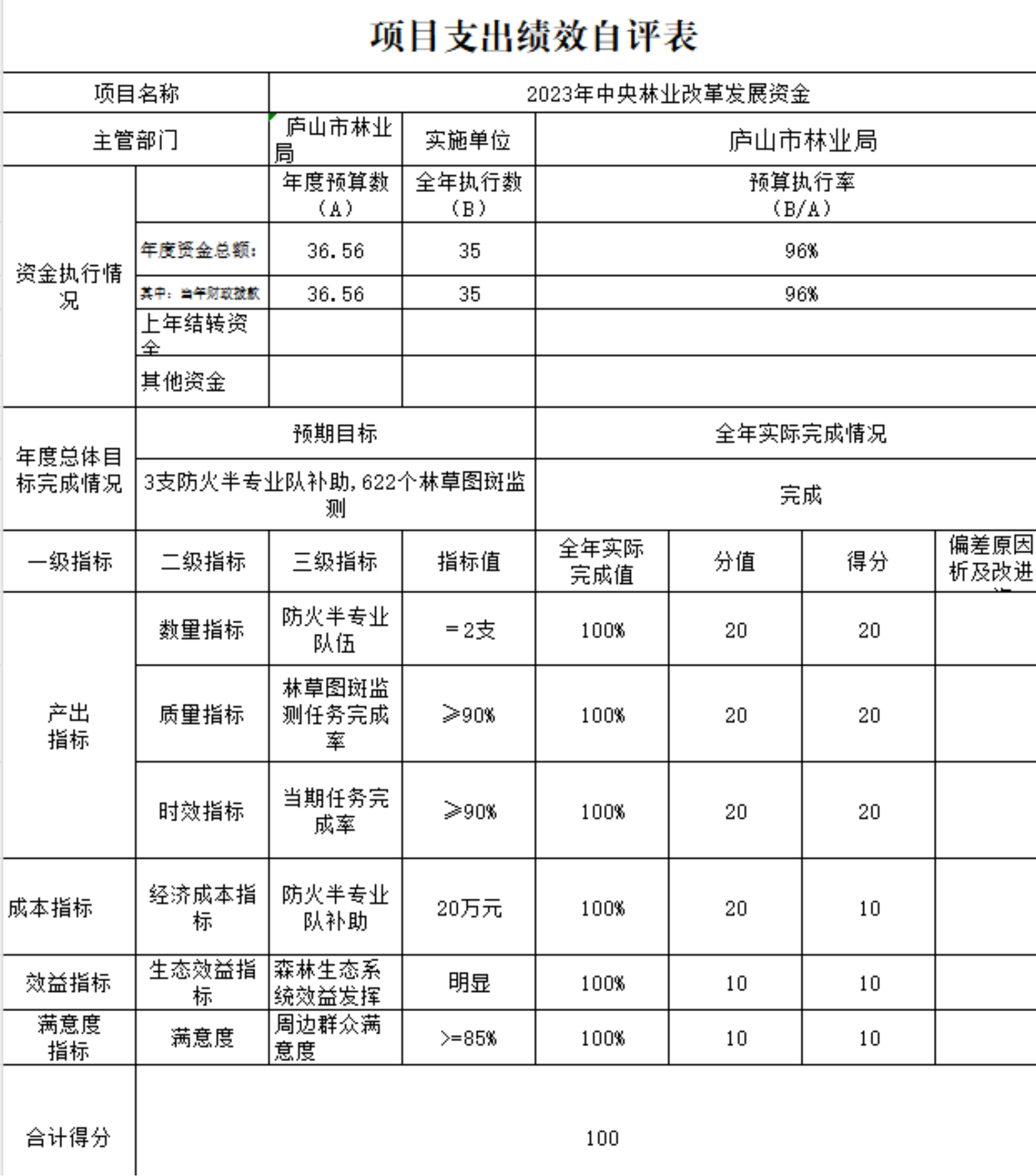 产出质量指标分值10分,实际得分10分。2023年度,三级林长组织体系正常有效开展工作。已完成该指标。