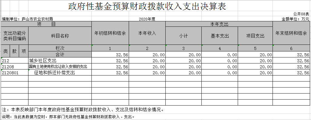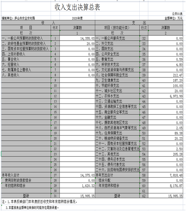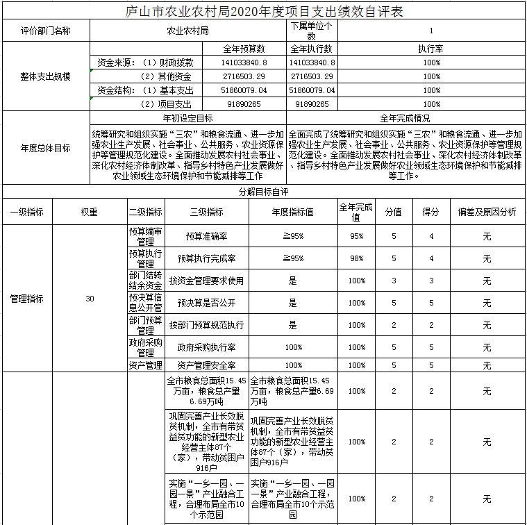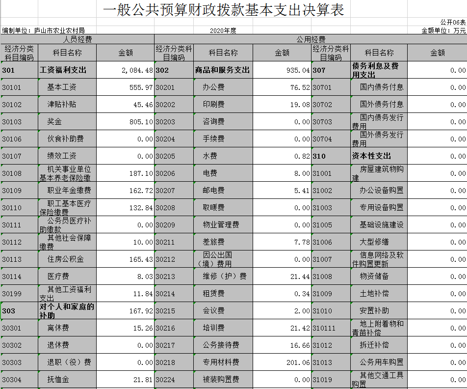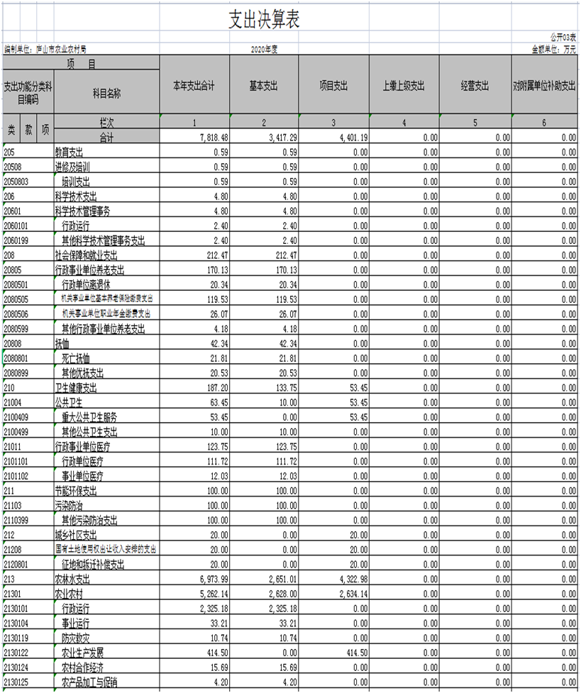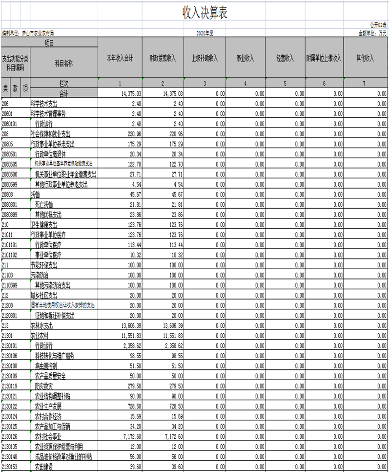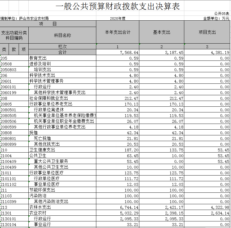 庐山市农业农村局2020年度部门决算