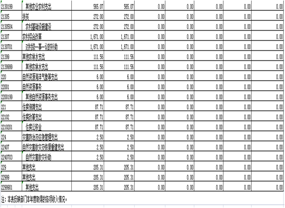 (七)农林水支出年初预算数为19318.68万元,决算数为6973.99万元,完成年初预算的37.10%,主要原因是:为了农村环境提升、集镇改造、扶贫及对个人和家庭补助资金增多,财政拨款资金增加。今年很多新农村建设项目资金年底来不及出账。项目资金结余较大。