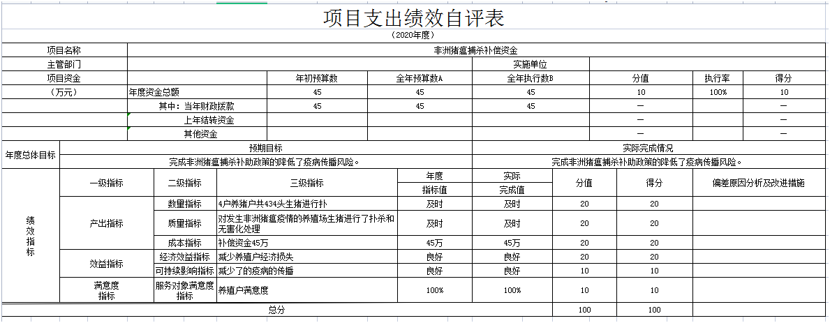 (四)项目支出绩效自评报告