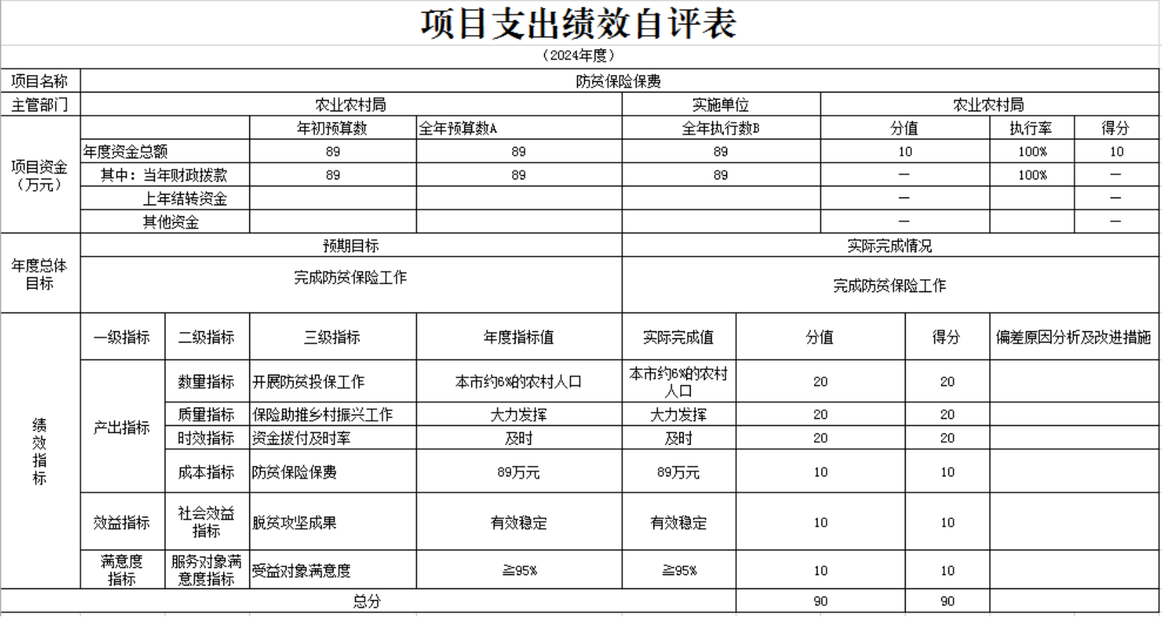 水稻投保面积覆盖面≥85%、育肥猪保险覆盖率≥45%、动物疫情监测点81个、耕地地力监测点(国家1个)、粮食应急培训人数≥20人、解决县级储备粮1000吨轮换亏损、支持农民合作社4家、支持家庭农场1家、新增改善灌溉面积≥500亩、大力扶持龙头企业1家、建成省级农业物联网示范基地1个、农产品品牌建设数量3个、动物疫情应急防控培训次数>1次、动物疫情应急防控监测及检测采样次数>3次、动物疫情应急防控消毒次数>3次、养殖环节病死猪无害化处理头数271头、放流四大家鱼苗种304万尾、放流翘嘴鲌200万尾、渔政执法工作人员血防补贴11个、农产品定量检测≥400批次、科技示范展示基地≥1个、特聘农技员数量10人、部队粮食供应正常运转、完成村庄整治任务和村庄长效管护61个、发放实际种粮农民一次性补贴资12.55万元,补贴面积0.86万亩,绿色优质高效管理核心示范基地≥200亩、耕地地力保护补贴面积≧13万亩、完成测土配方施肥技术推广面积28.6万亩次以上,打造0.5万亩“三新”集成配套技术示范区,建立三个类型土壤酸化改良示范片,完成2000亩绿肥种植,完成酸化耕地治理效果监测点1个,开展12个耕地质量点位调查,取土化验105个。