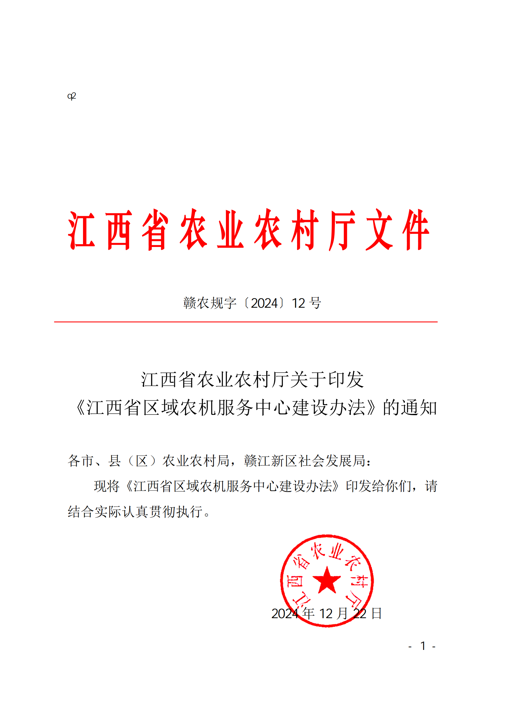 江西省农业农村厅关于印发《江西省区域农机服务中心建设办法》的通知江西省农业农村厅关于印发《江西省区域农机服务中心建设办法》的通知