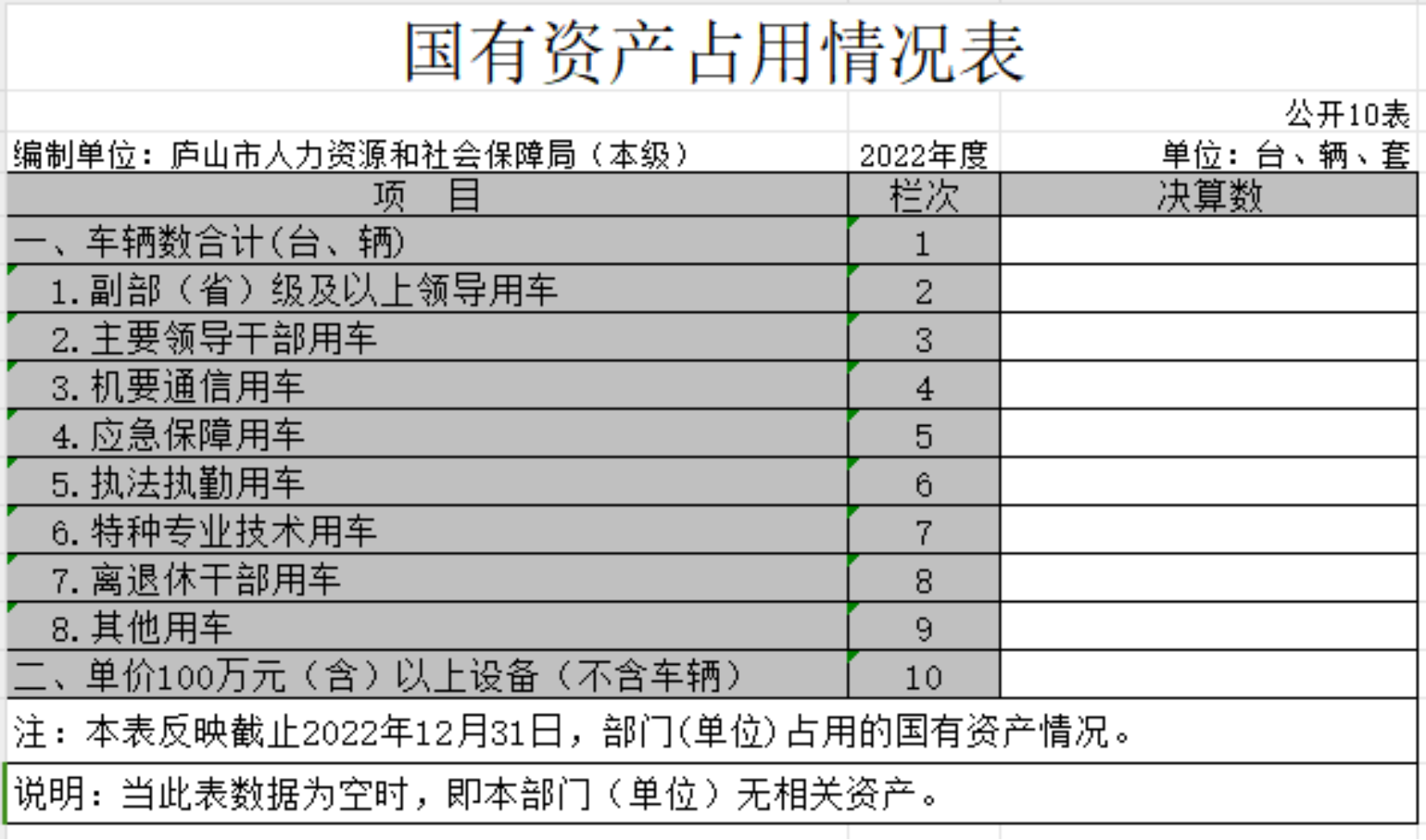 截止2022年12月31日,本单位(单位)国有资产占用情况见公开10表《国有资产占用情况表》。其中车辆中无其他用车。